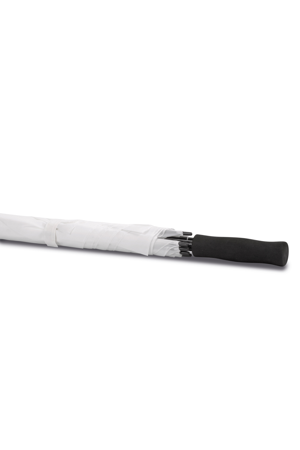Parapluie de golf carré 30'' / (diamètre : 130 cm), ouverture manuelle, baleines et mât en fibres de verre, embout de sécurité, toile en polyester 210T, poignée en éthylène-vinyle acétate (EVA), embouts de baleine et capuchon en polypropylène.