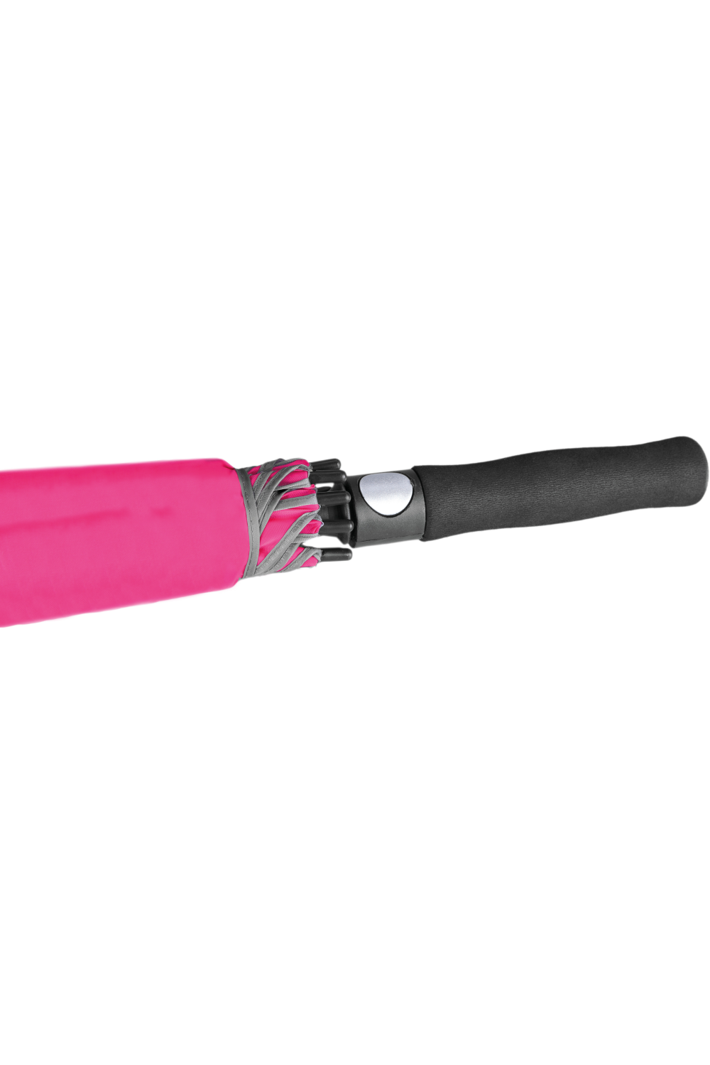 Parapluie de golf 27.5" / 70 cm avec ouverture automatique, diamètre : 125 cm. 8 baleines et mât en fibres de verre, toile en polyester 210T, poignée éthylène-vinyle acétate (EVA), capuchon en polypropylène, housse avec fermeture par bande auto-agrippante.
