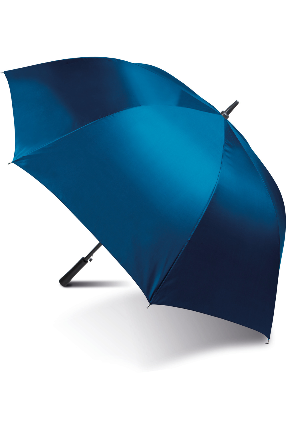 Parapluie de golf 26" (diamètre : 119 cm), ouverture automatique, mât en métal noir ép. 14 mm, baleines noires en fibres de verre, embouts de baleine en métal, poignée de golf en polycarbonate finition gommée mate, toile en polyester 210T.
