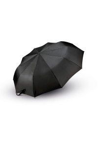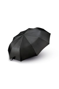 Diamètre : 96 cm. Pliable en 3 parties, ouverture automatique, mât en métal, baleines en aluminium et fibres de verre, poignée arrondie en gomme polypropylène, embouts de baleine en métal, toile en pongé de polyester 190T.