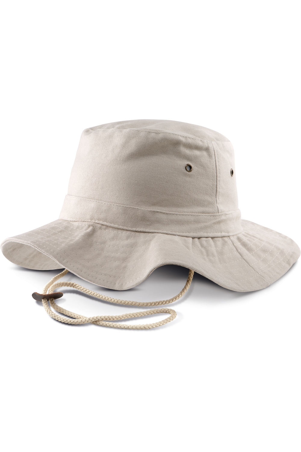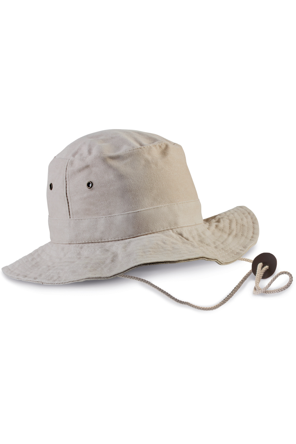 100% coton sergé brossé épais. Finitions en surpiqûres sur le pourtour. Bande de renfort sur calotte. Lanière avec stoppeur cuir pour réglage. 4 œillets d'aération métalliques.