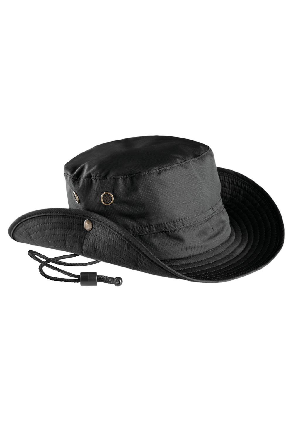 100% polyester avec enduction. Forme elliptique, larges bords souples et pliables avec boutons pression sur le coté, œillets d'aération, lanière et stoppeur. Disponible en 2 tailles.