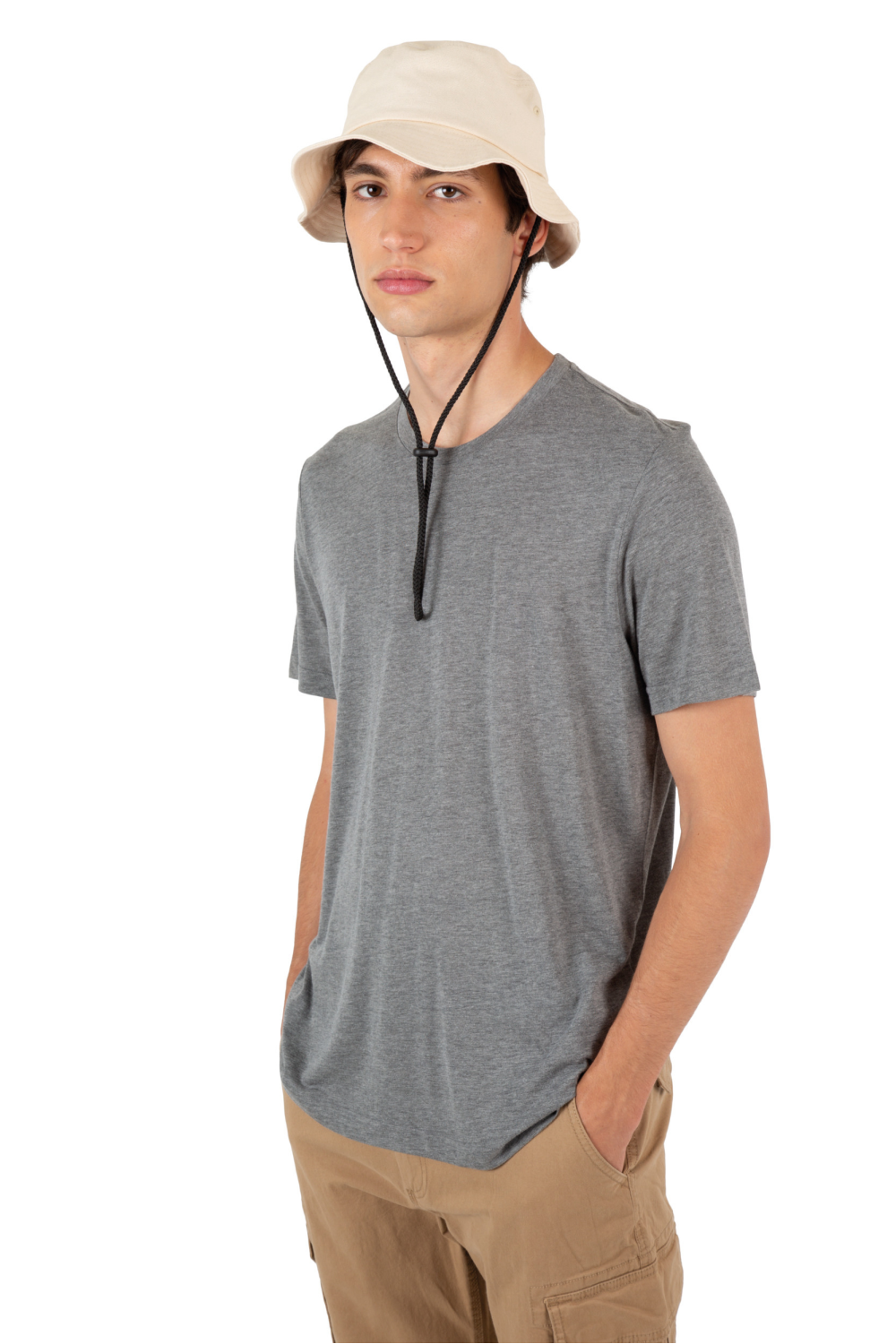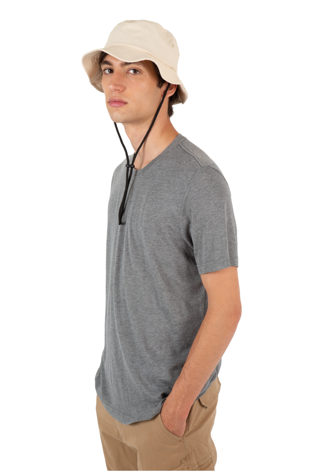 100% coton. Bob style bucket hat en coton. Lacet avec stoppeur. Etiquette de marque Tear Away.