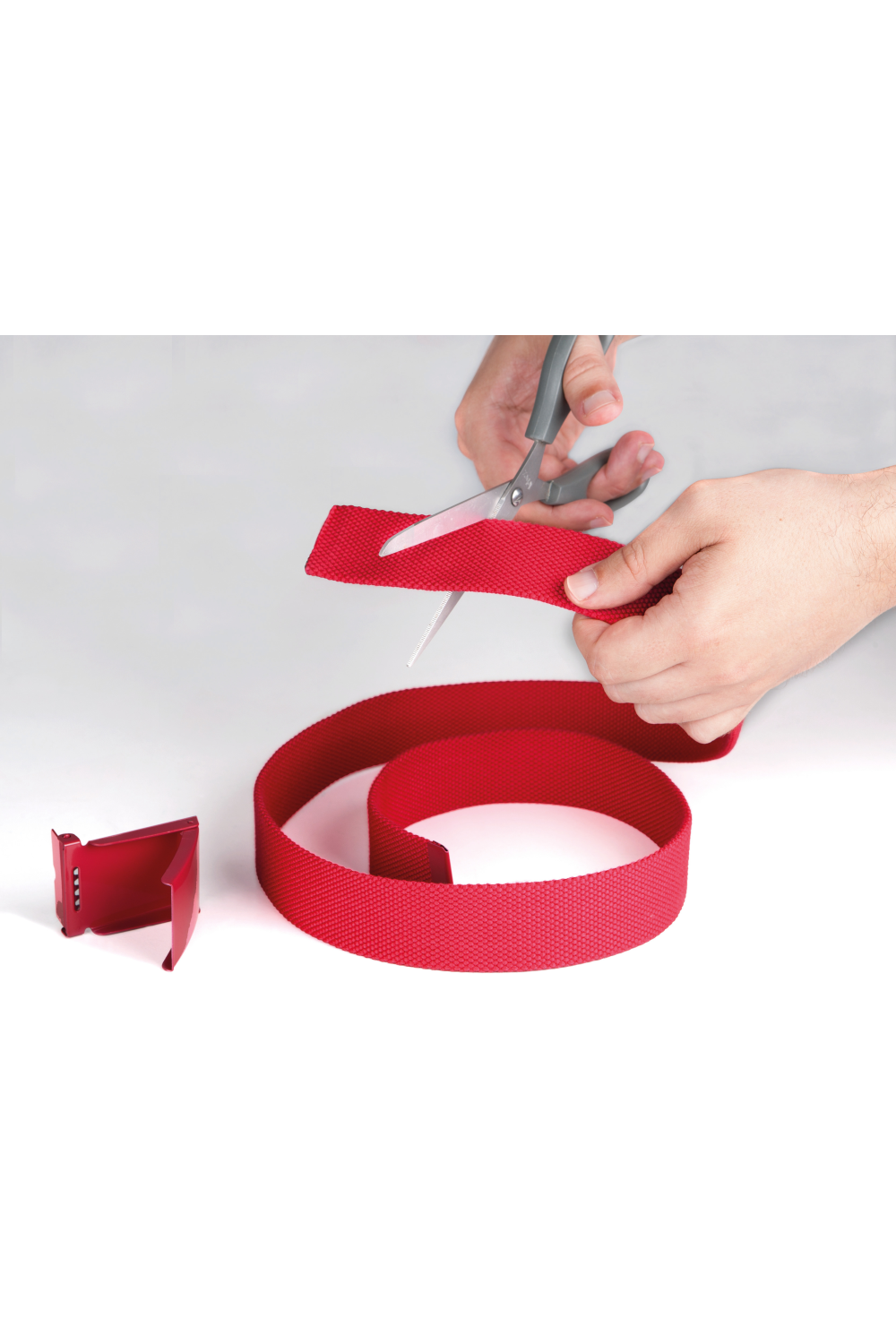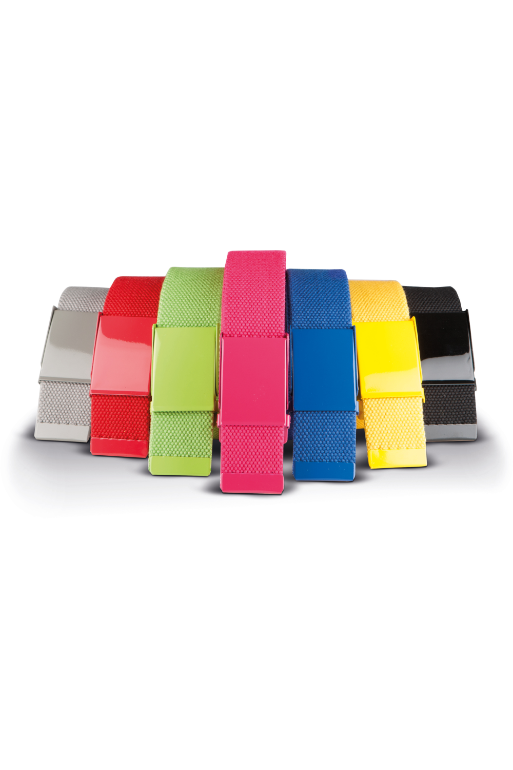 100% polyester. Boucle métallique ton sur ton. Longueur réglable du XS au 3XL. Découpable pour ajuster à votre taille.