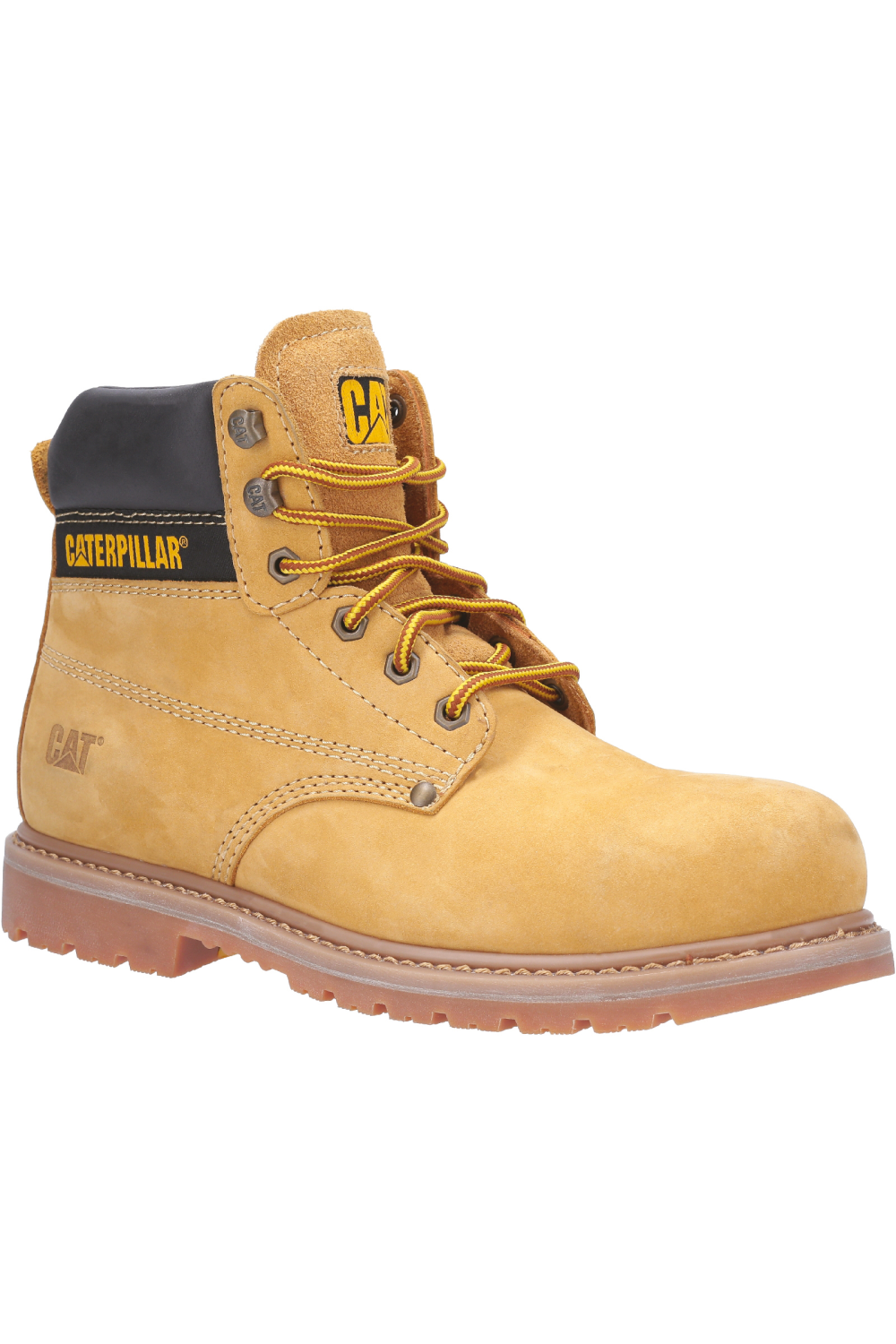 Chaussures de haute sécurité CAT confortable et très résistante quelles que soient les conditions. 2 crochets à laçage rapide et construction trépointe Goodyear. Tige cuir nubuck résistant à l'eau. Col matelassé pour un meilleur confort. Maille évacuant l'humidité. Embout de protection et semelle anti perforation en acier. Semelle intérieure amovible en PU avec amorti au talon. Semelle extérieure résistante à la chaleur et aux hydrocarbures. Norme EN ISO 20345:2011 S3 HRO SRA.