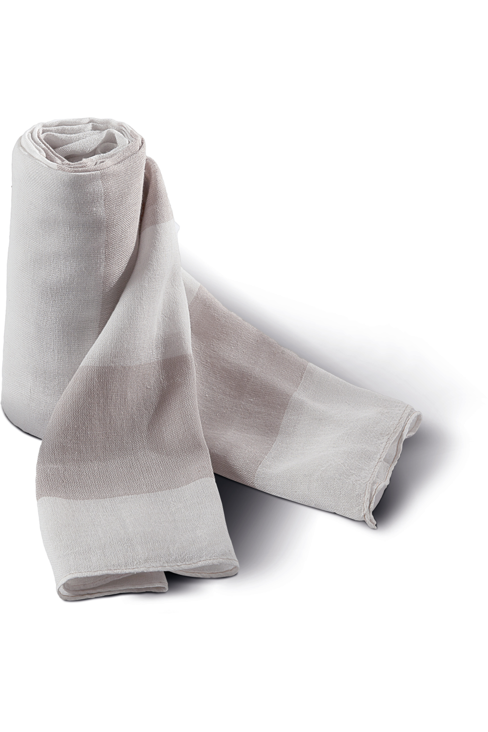 100% coton. Voile de coton très léger avec larges rayures bicolores de 8 cm. Finition bord roulé.