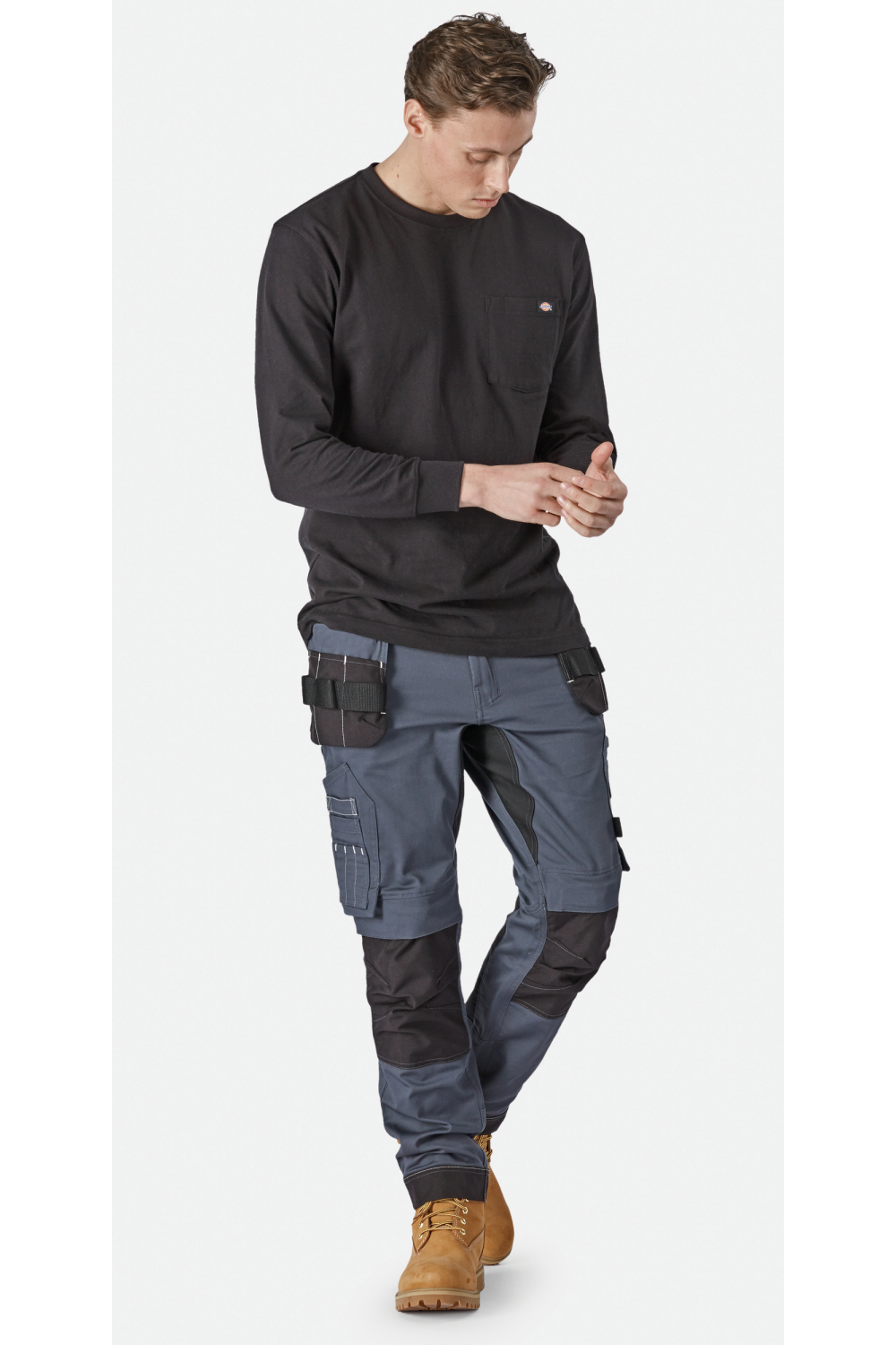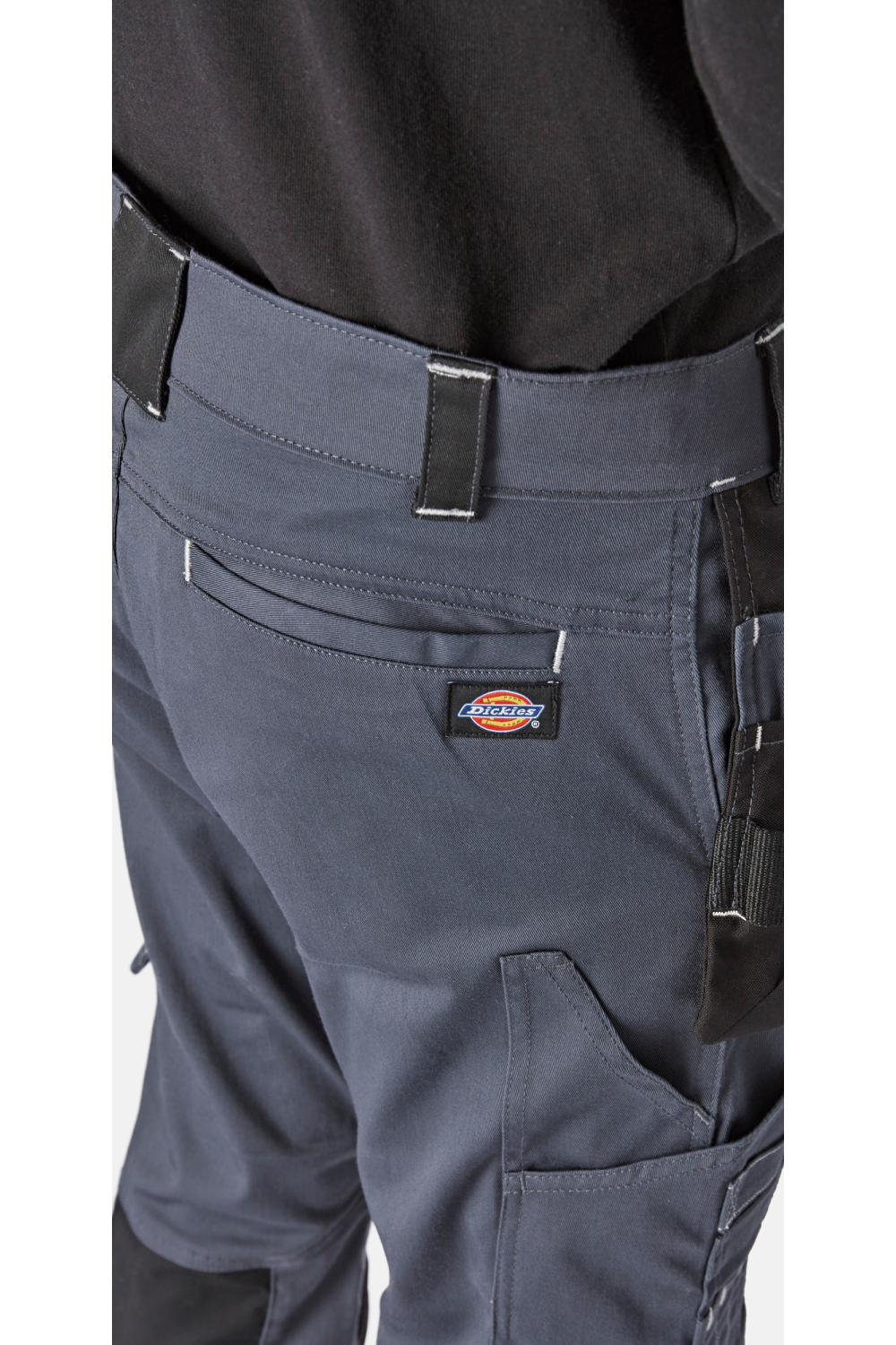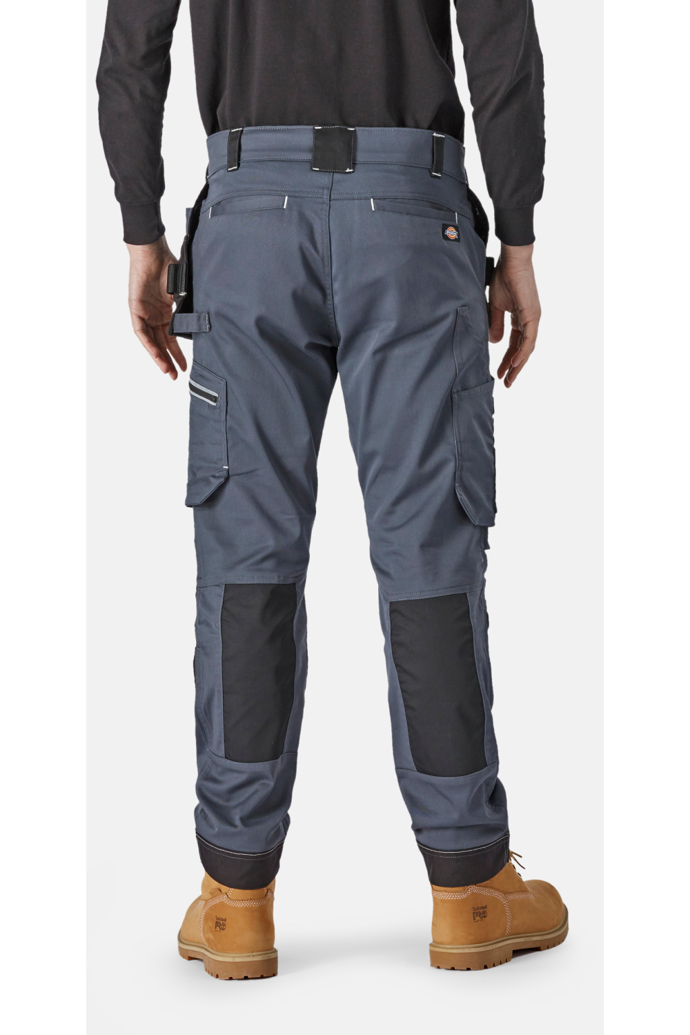 60% coton / 38% polyester / 2% élasthanne. Multi poche. Poches Holster. Renforts genoux. Taille élastiquée. Passant pour marteau. Poche pour règle. Bandes réfléchissantes.