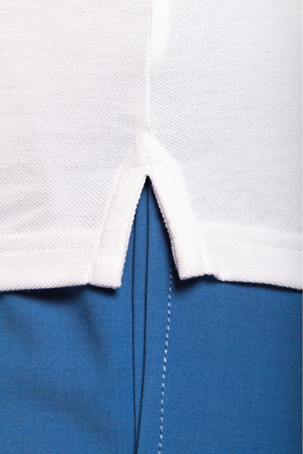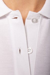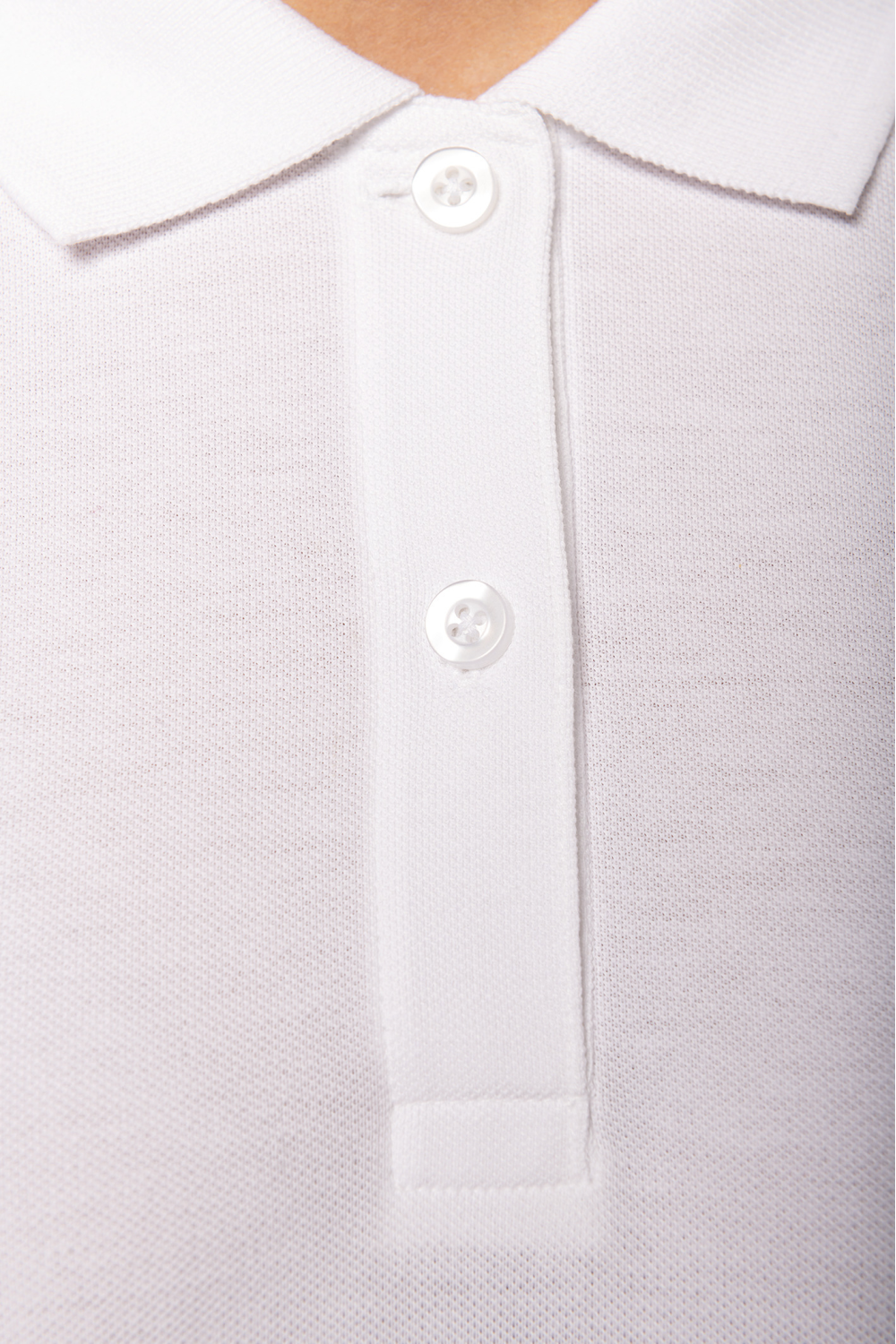 100% coton peigné biologique. Polo piqué. Coupe droite. Col et bas de manches en bord-côte 1x1. Patte de boutonnage 2 boutons ton sur ton. Bande de propreté sur intérieur col et fentes latérales. Coutures côtés. Finition double aiguilles bas de vêtement. Pas d'étiquette de marque au col, uniquement une puce de taille pour faciliter la personnalisation. Certifié STANDARD 100 by OEKO-TEX® N° CQ 1007/7, IFTH.