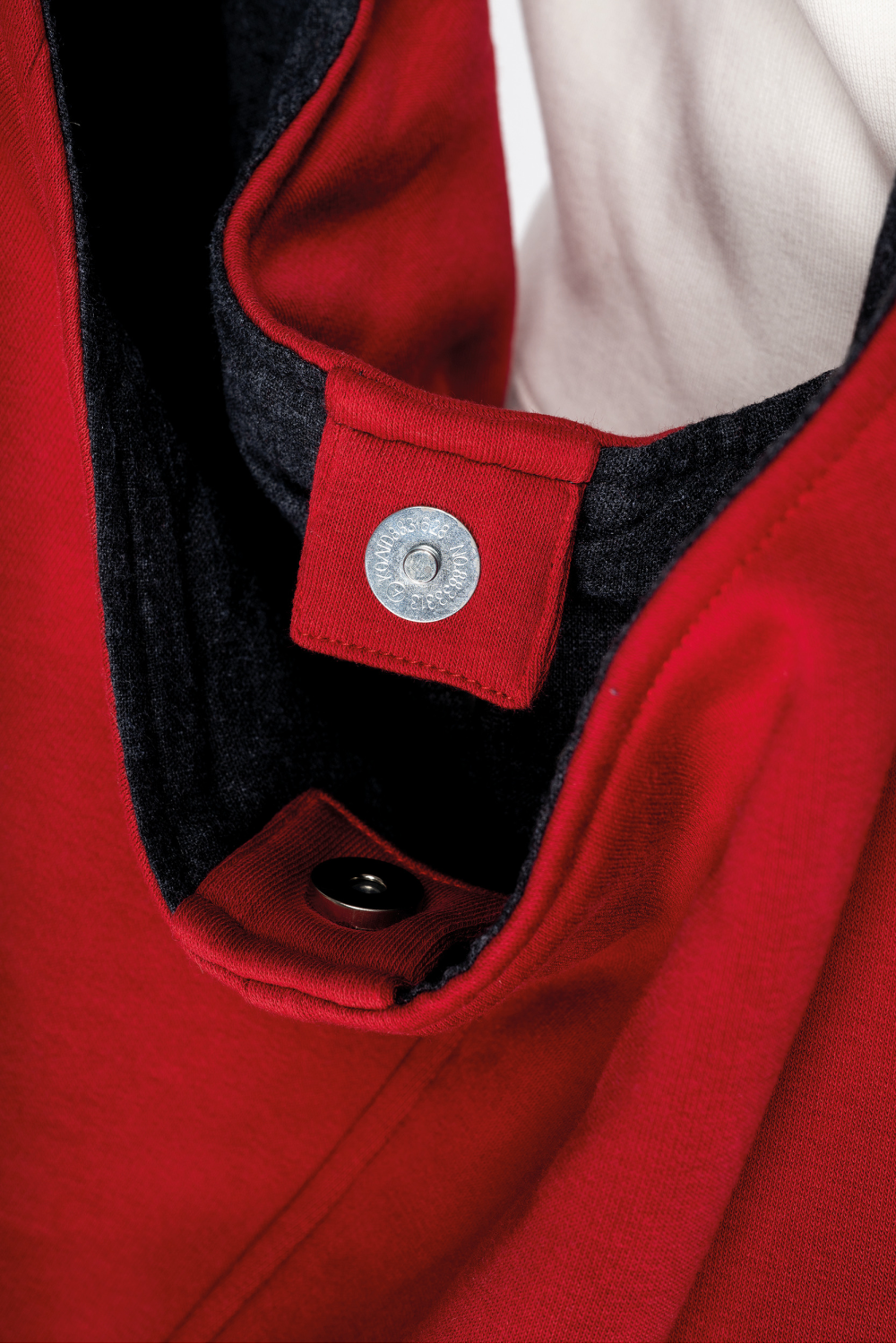 Extérieur : 85% coton biologique. 15% polyester recyclé post-consumer. Doublure : 75% coton recyclé / 22% polyester recyclé / 3% autres fibres. ONE SIZE (36 x 55 x 85cm). Capacité : 25L. Coton peigné. Molleton gratté 3 fils LSF (Low Shrinkage Fleece : molleton pré-réteci). Lavé aux enzymes. Doublé avec poche intérieure zippée et zip pour la personnalisation en nylon recyclé. Fermeture par boutons aimantés.