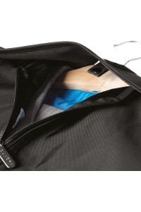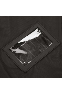 Polyester 210D. Se replie grâce à la boucle d'accrochage. Porte-nom. Fermeture à glissière sur toute la longueur.