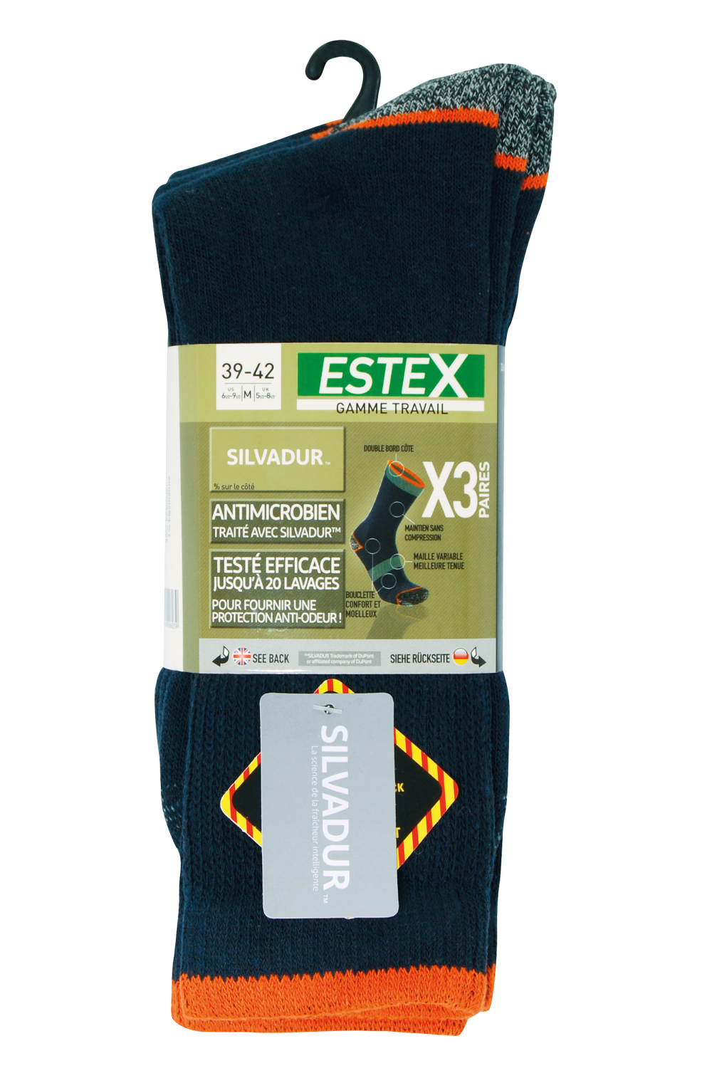 Chaussettes de travail qui ne compriment pas. Double bord côte pour une meilleure finition. Fine bouclette dans le pieds. Traitement anti bactérien SILVADUR ®, testé résistant jusqu'à 20 lavages.