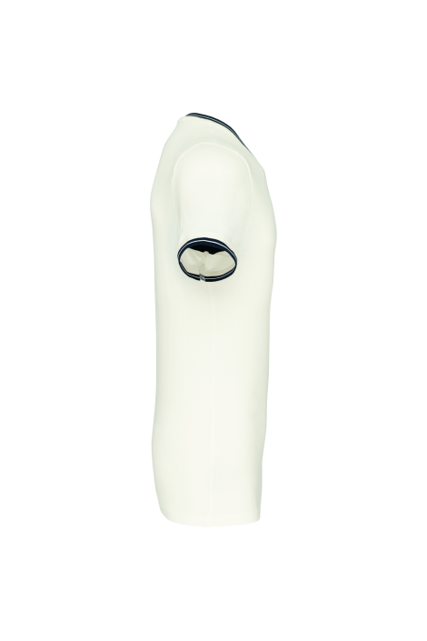 100% coton. Maille piquée en coton peigné. Finitions bord-côte avec rayures contrastées au col et bas de manches. Bande de propreté à l'encolure. Finition double aiguille au bas du vêtement. Certifié STANDARD 100 by OEKO-TEX® N° CQ 1007/7, IFTH.
