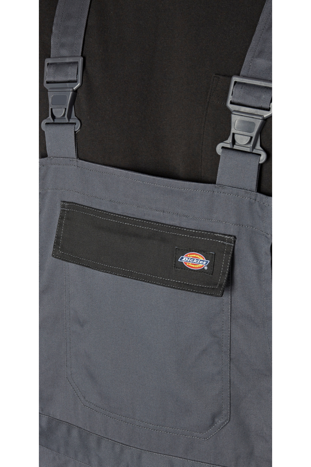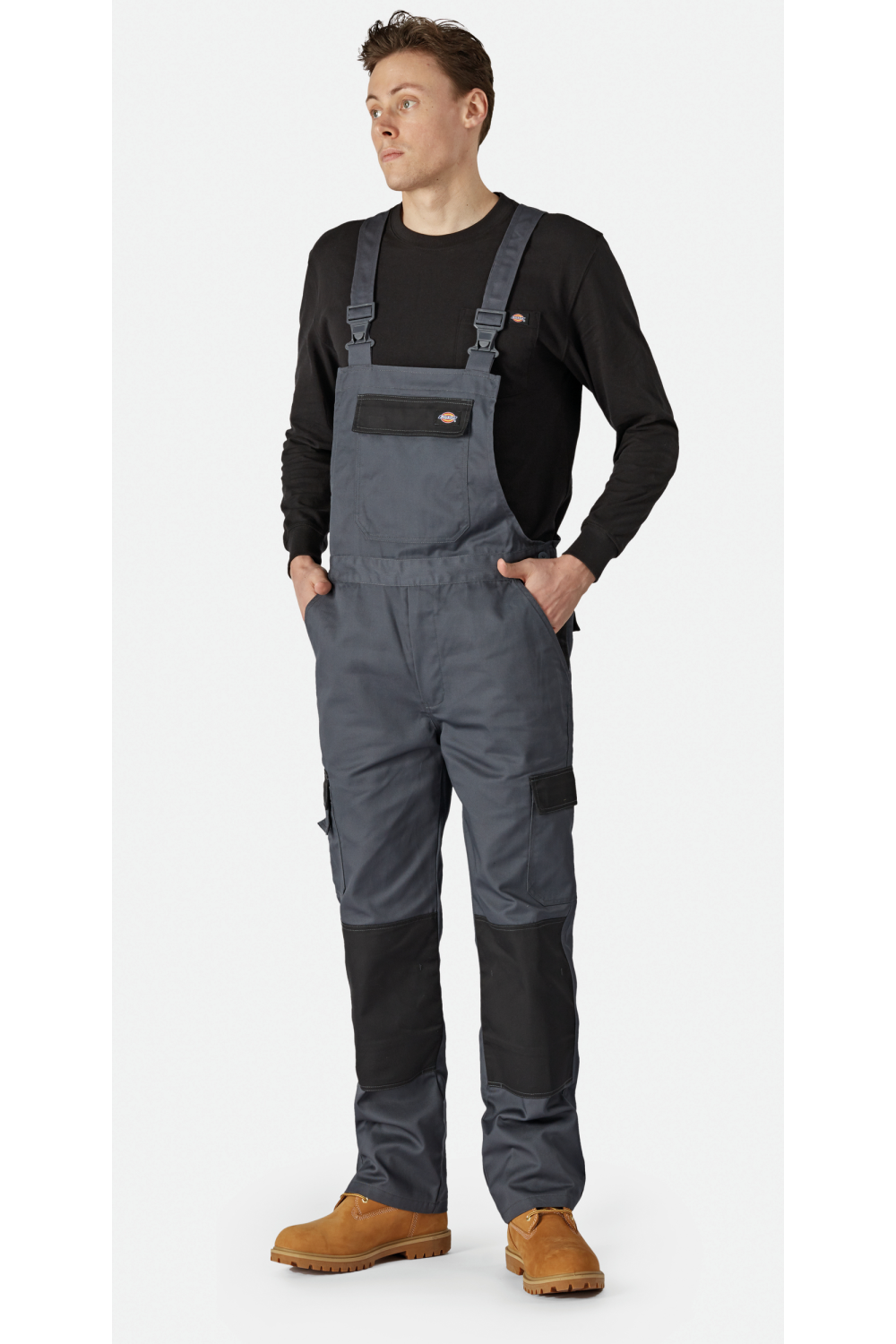 65% polyester / 35% coton. Deux poches à la taille. Bretelles réglables. Poche cargo avec poche intégrée pour téléphone portable. 2 poches arrières. Poche pour le mètre sur la jambe droite. Lavable à 40°.