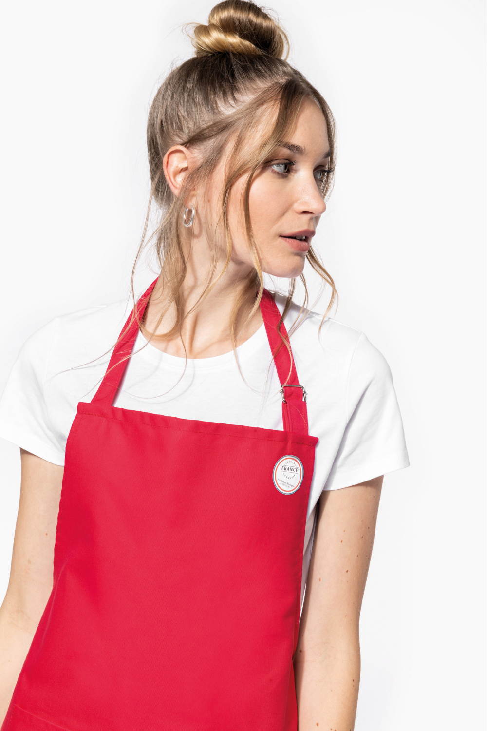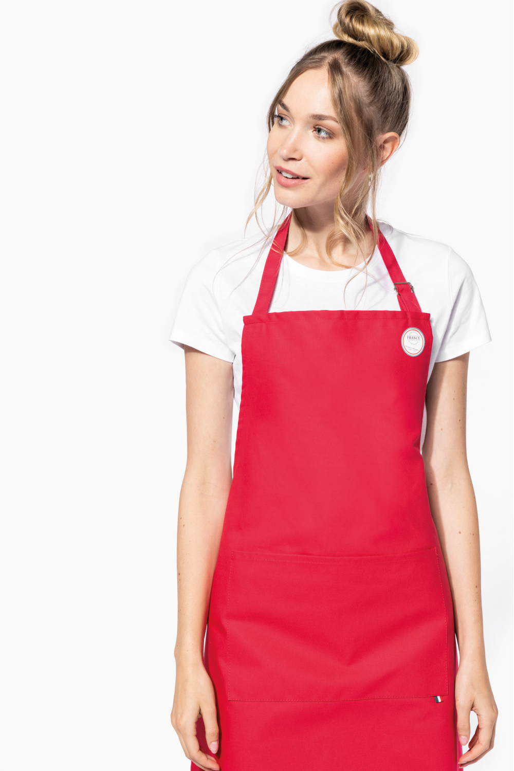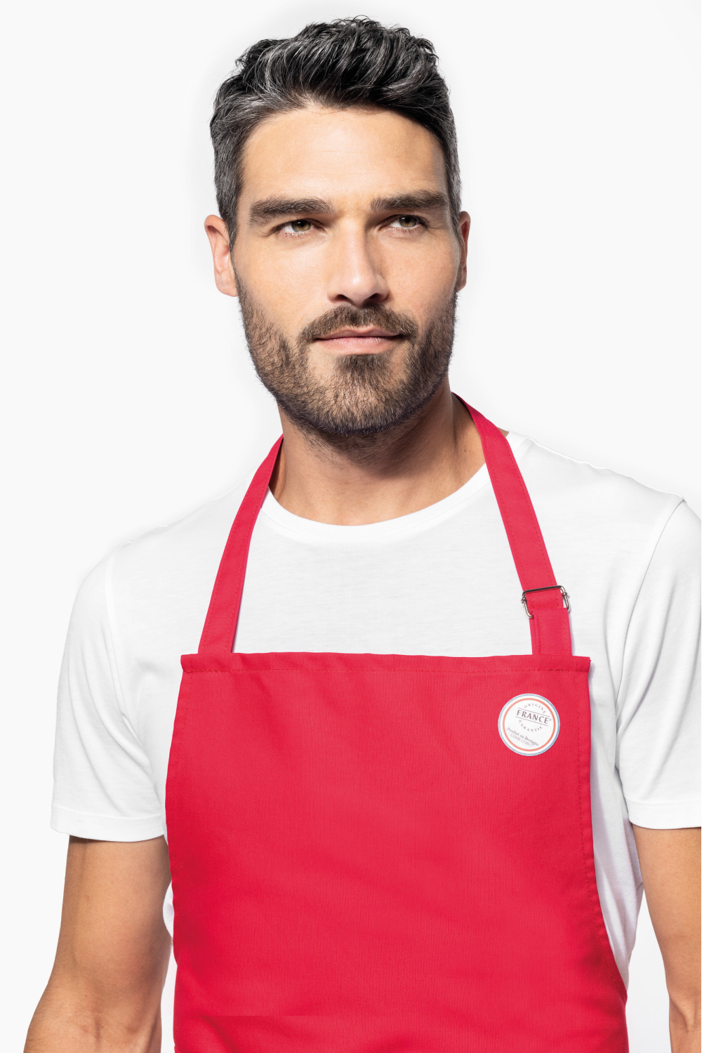 100% coton. Lavage domestique à 60°C. Longueur ajustable pour un meilleur confort. Étiquette tissée drapeau France sur poche avant. Label "Origine France Garantie. Fabriqué en Bretagne"