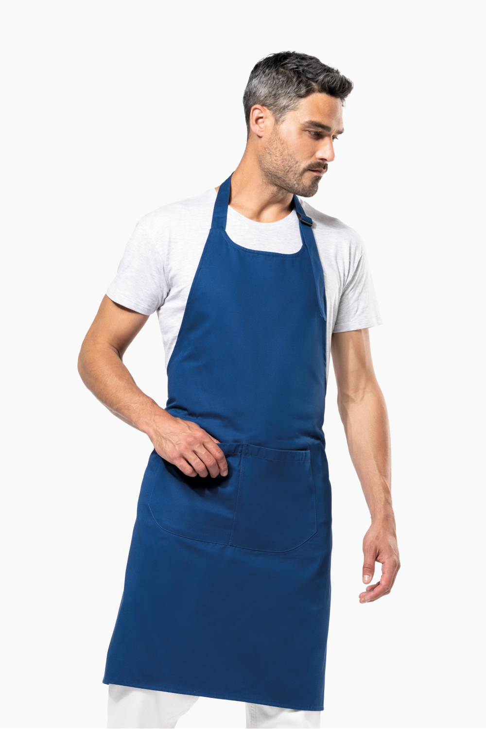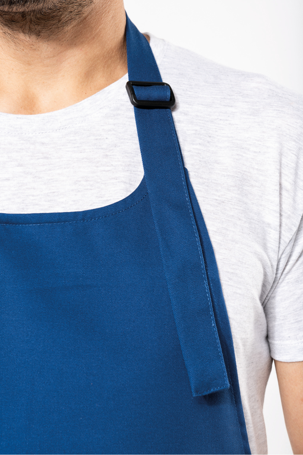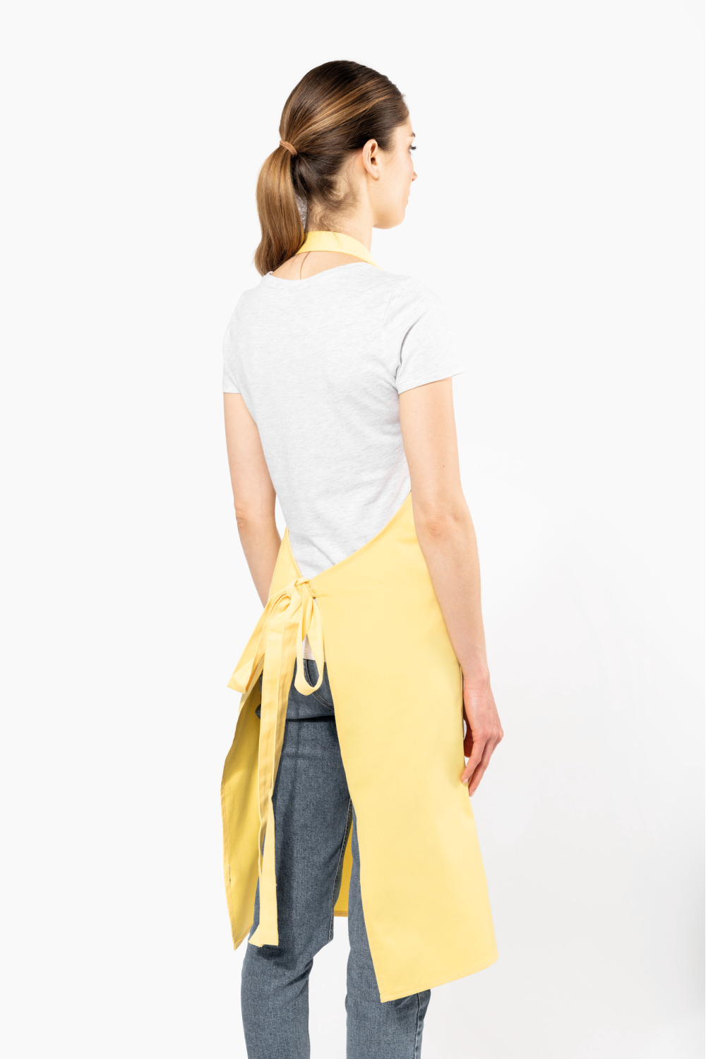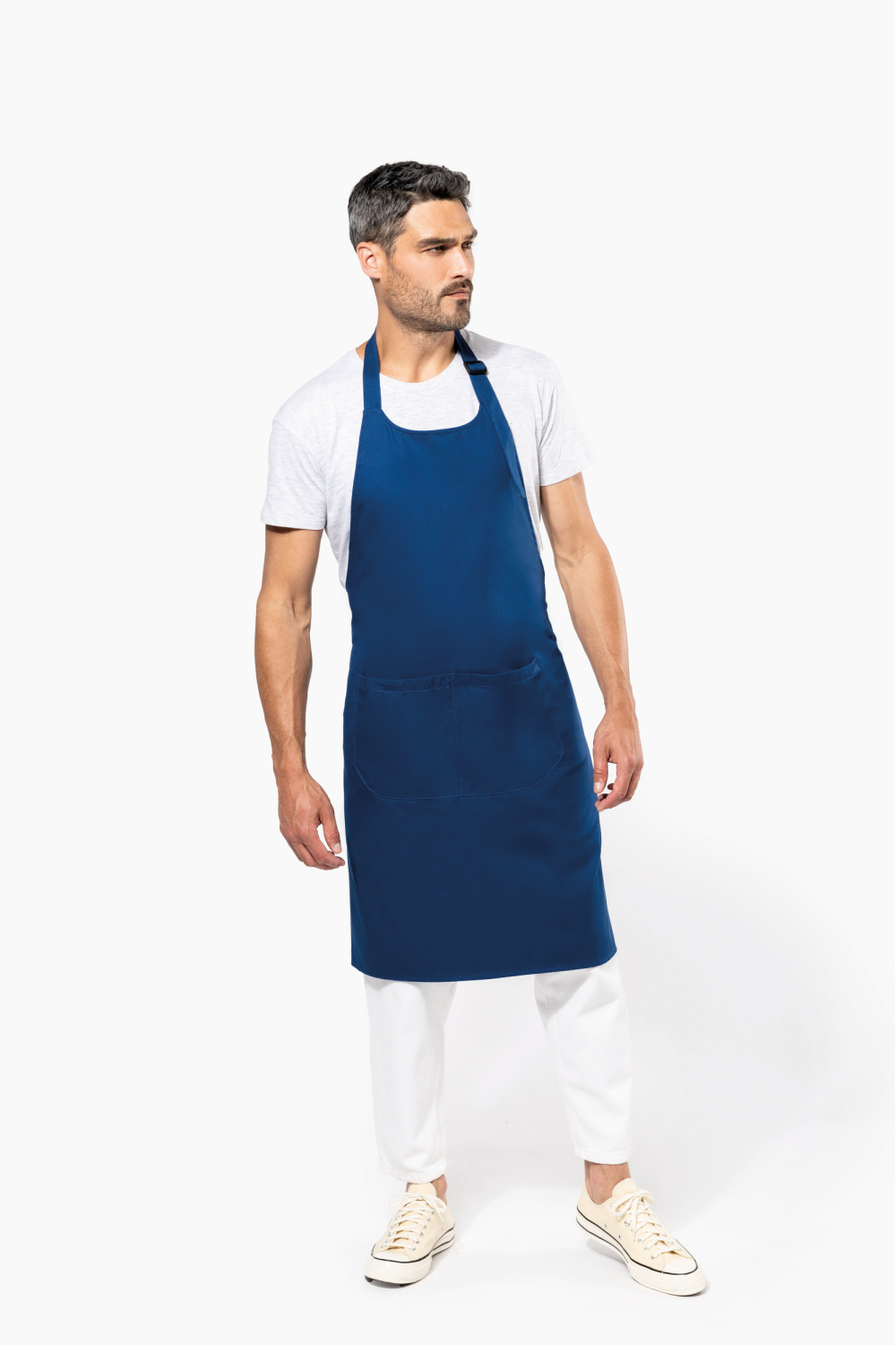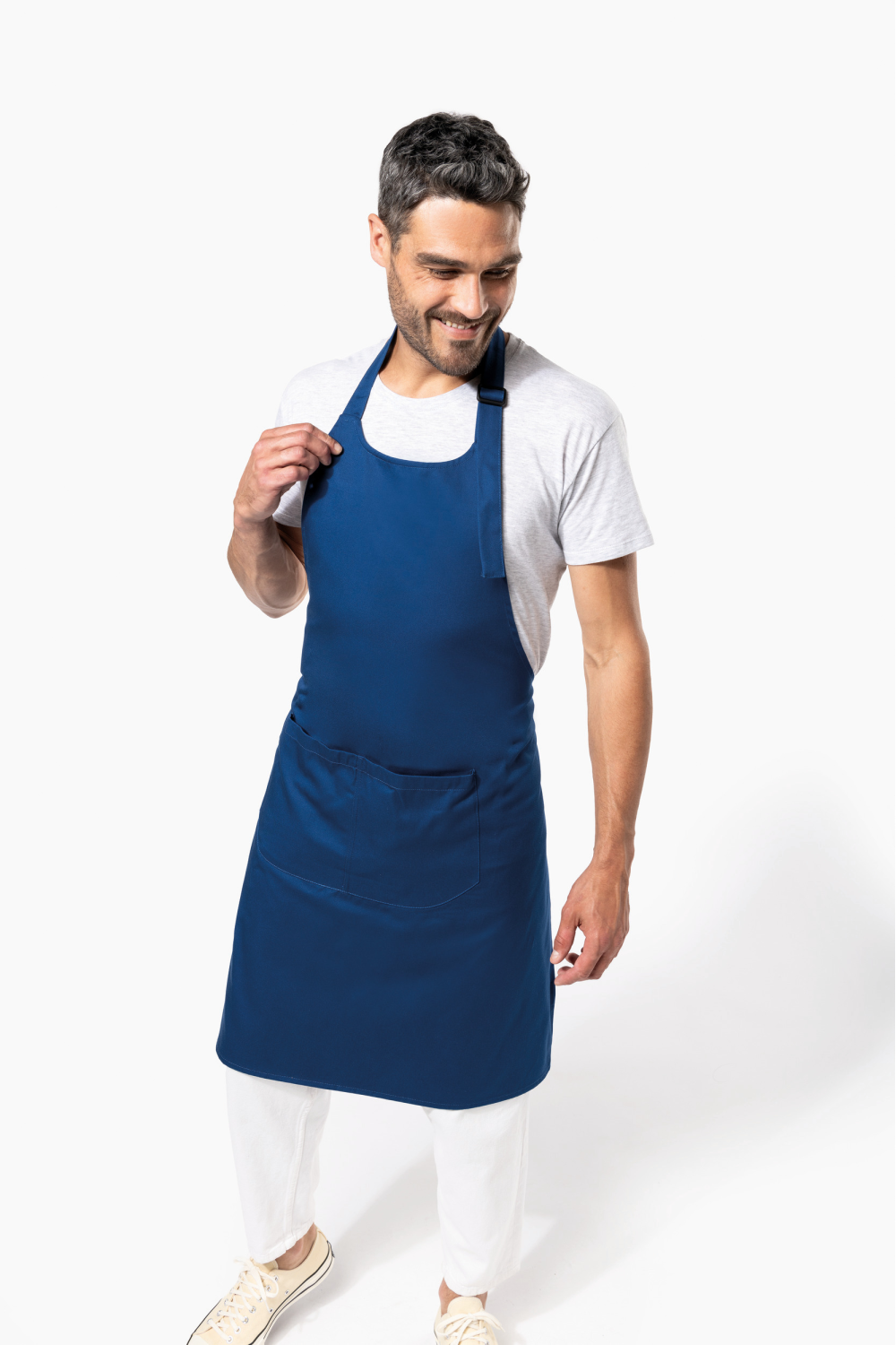 100% coton biologique. Lavage domestique 60°. Boucle de réglage en plastique recyclé au niveau du cou pour ajuster la longueur du tablier. Grande poche avant en deux compartiments. Dimensions : H 90 cm x L 76 cm. Poche : H 20 cm x L 31,5 cm. Certifié STANDARD 100 by OEKO-TEX® N° CQ 1007/8, IFTH.
