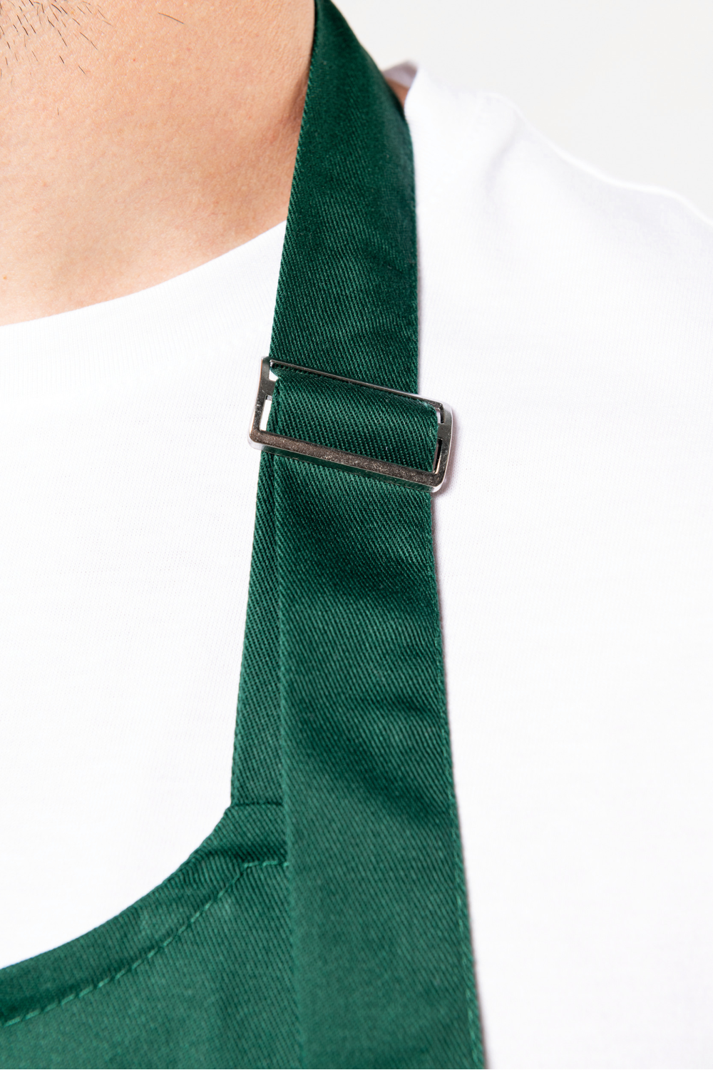 65% polyester / 35% coton (Denim, Black Denim 65 % coton / 35 % polyester). Lavage domestique 60°C. Boucle de réglage en métal au niveau du cou pour ajuster la longueur du tablier. Grande poche avant en deux compartiments. Dimensions : H 90 cm - L 76 cm. Poche : H 20 cm - L 31,5 cm. Couleurs Denim : ce produit a subi un traitement spécial et présente un aspect volontairement vieilli. Ce procédé de fabrication implique des variations de couleurs d'un produit à l'autre et rend chaque pièce unique. Certifié STANDARD 100 by OEKO-TEX®N° CQ1007/8, IFTH.