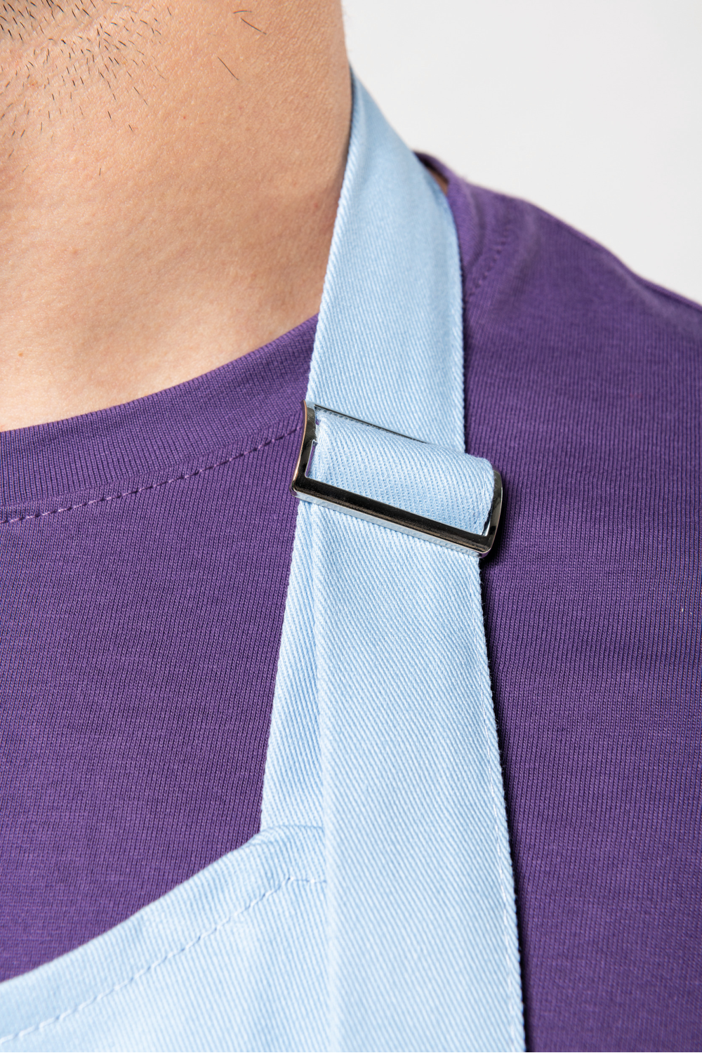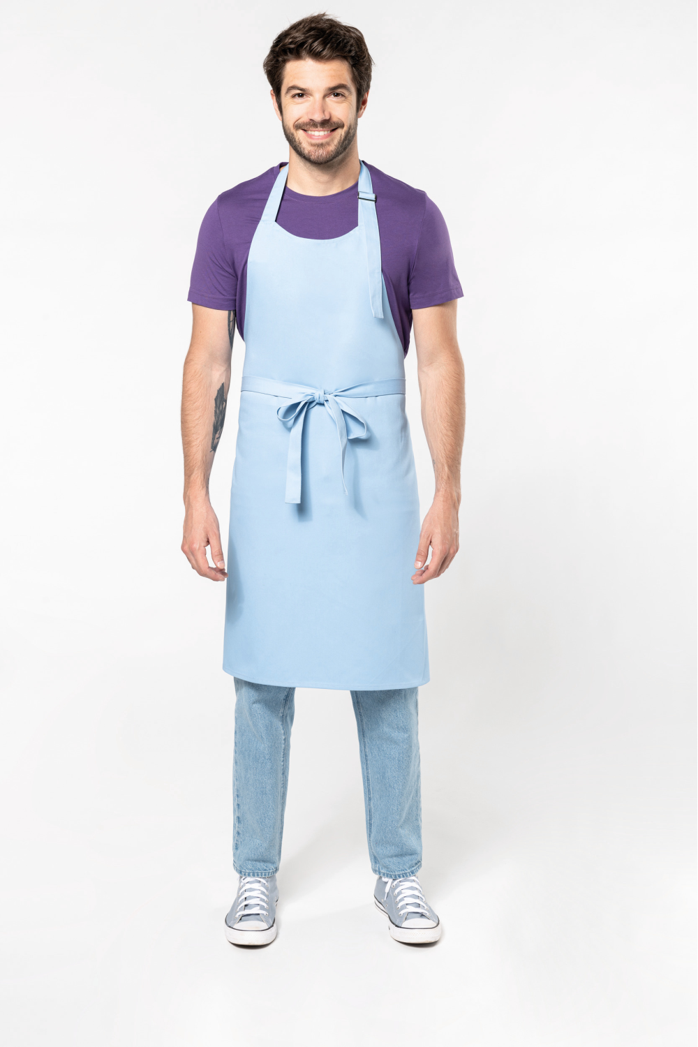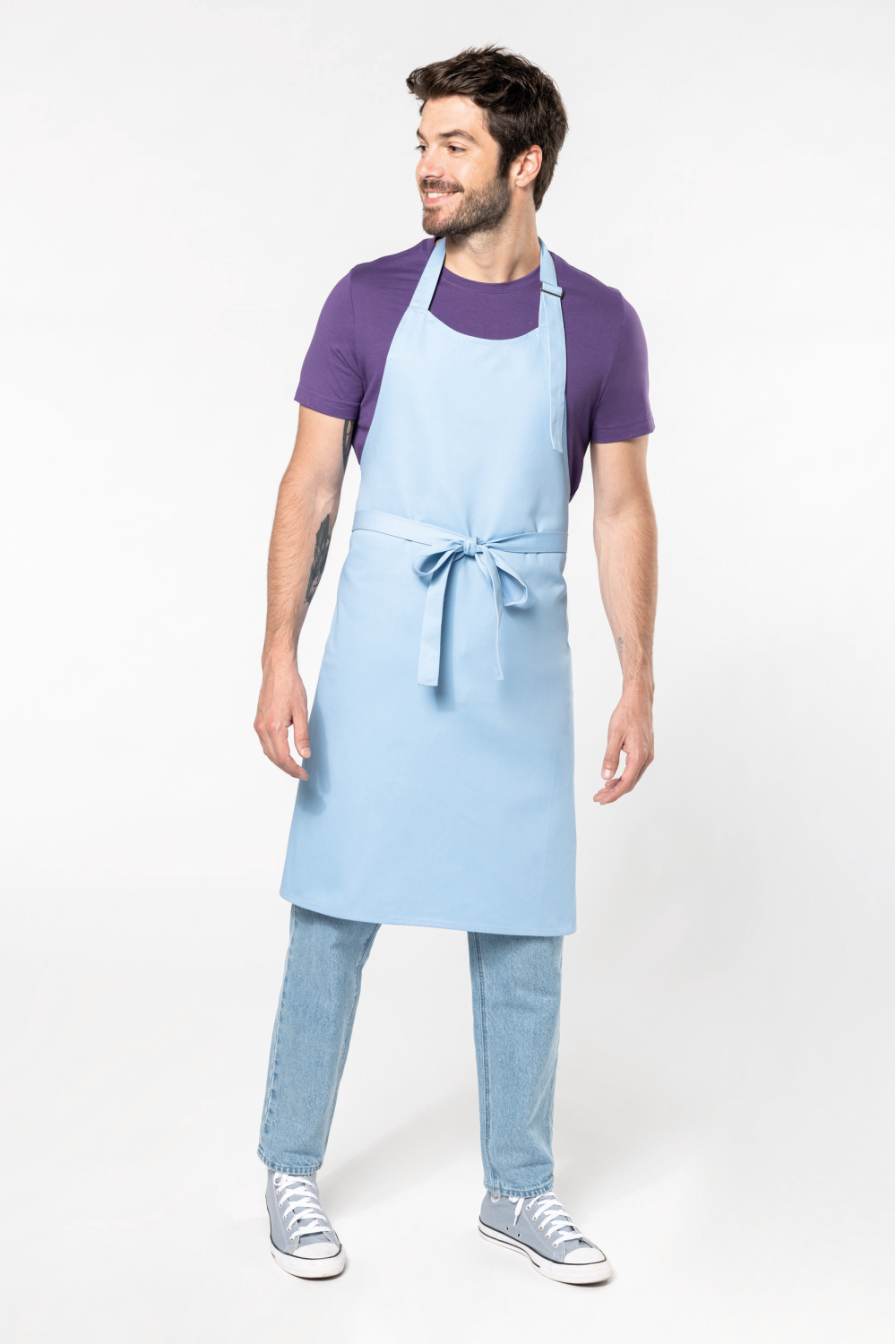 100% coton. Lavage domestique 60°C. Boucle de réglage en métal au niveau du cou pour ajuster la longueur du tablier. Sans poche. Dimensions : tablier H 90 cm - L 76 cm. Couleur Denim : ce produit a subi un traitement spécial et présente un aspect volontairement vieilli. Ce procédé de fabrication implique des variations de couleurs d'un produit à l'autre et rend chaque pièce unique. Certifié STANDARD 100 by OEKO-TEX®N° CQ1007/8, IFTH.