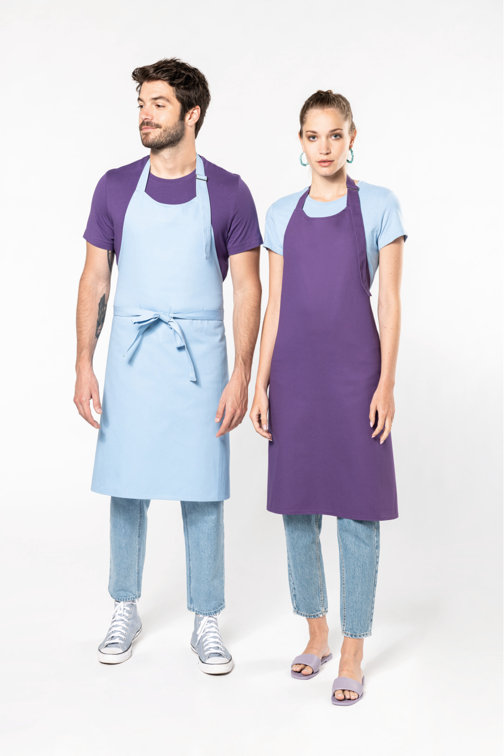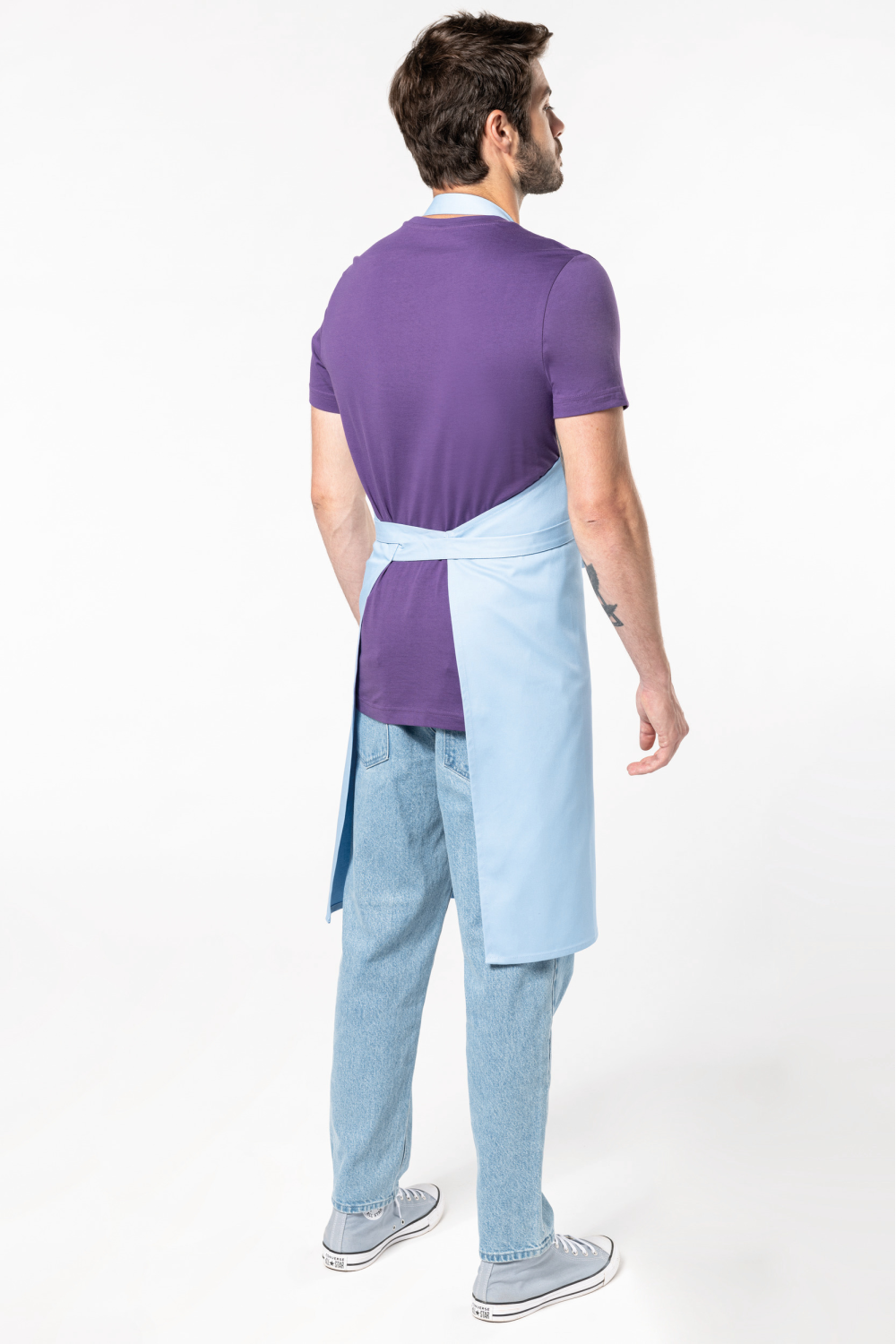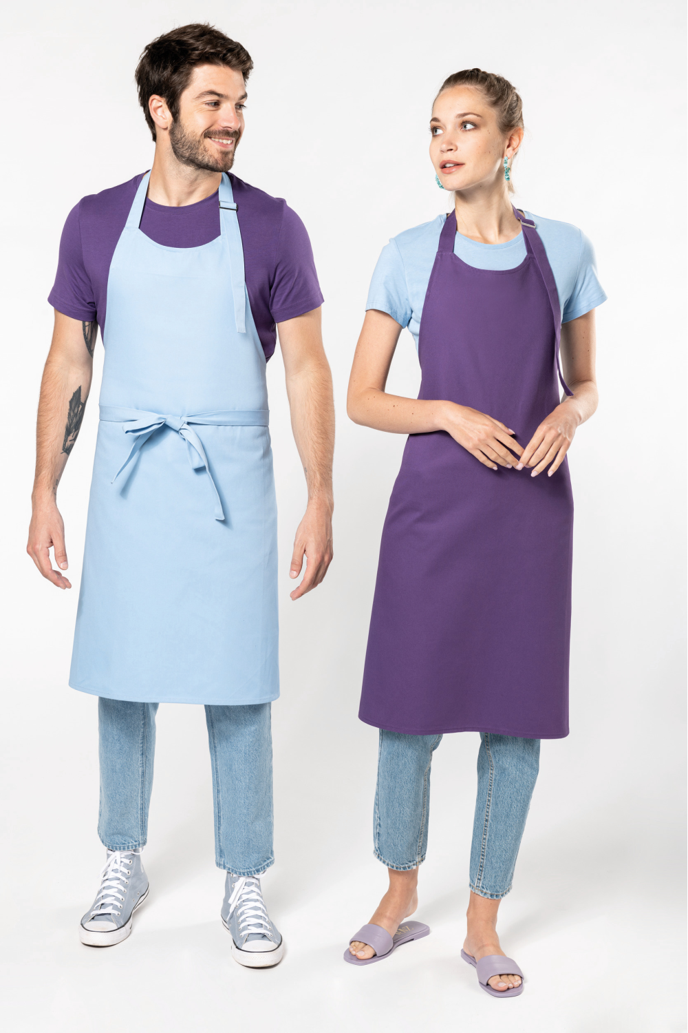 100% coton. Lavage domestique 60°C. Boucle de réglage en métal au niveau du cou pour ajuster la longueur du tablier. Sans poche. Dimensions : tablier H 90 cm - L 76 cm. Couleur Denim : ce produit a subi un traitement spécial et présente un aspect volontairement vieilli. Ce procédé de fabrication implique des variations de couleurs d'un produit à l'autre et rend chaque pièce unique. Certifié STANDARD 100 by OEKO-TEX®N° CQ1007/8, IFTH.