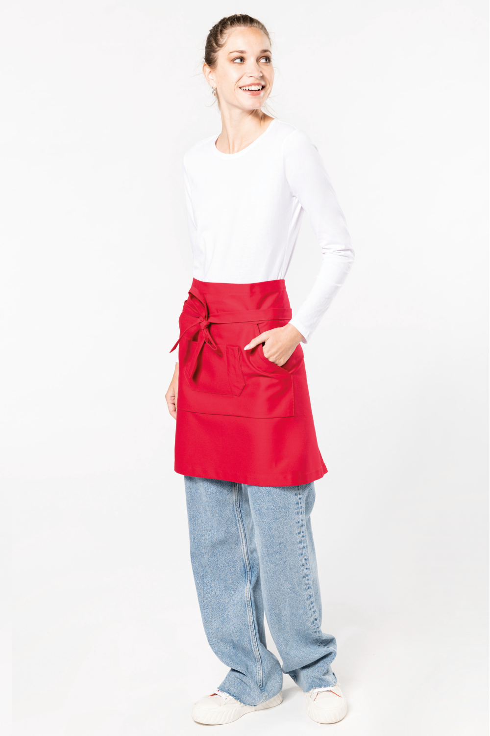 100% coton. 2 poches : 1 poche kangourou et 1 poche divisée en 2 compartiments. Lavage domestique 60°C. Dimensions : H 50 cm - L 90 cm. Poche : H 24 cm - L 27.50 / 46 cm. Couleur Denim : ce produit a subi un traitement spécial et présente un aspect volontairement vieilli. Ce procédé de fabrication implique des variations de couleurs d'un produit à l'autre et rend chaque pièce unique. Certifié STANDARD 100 by OEKO-TEX®N° CQ1007/8, IFTH.