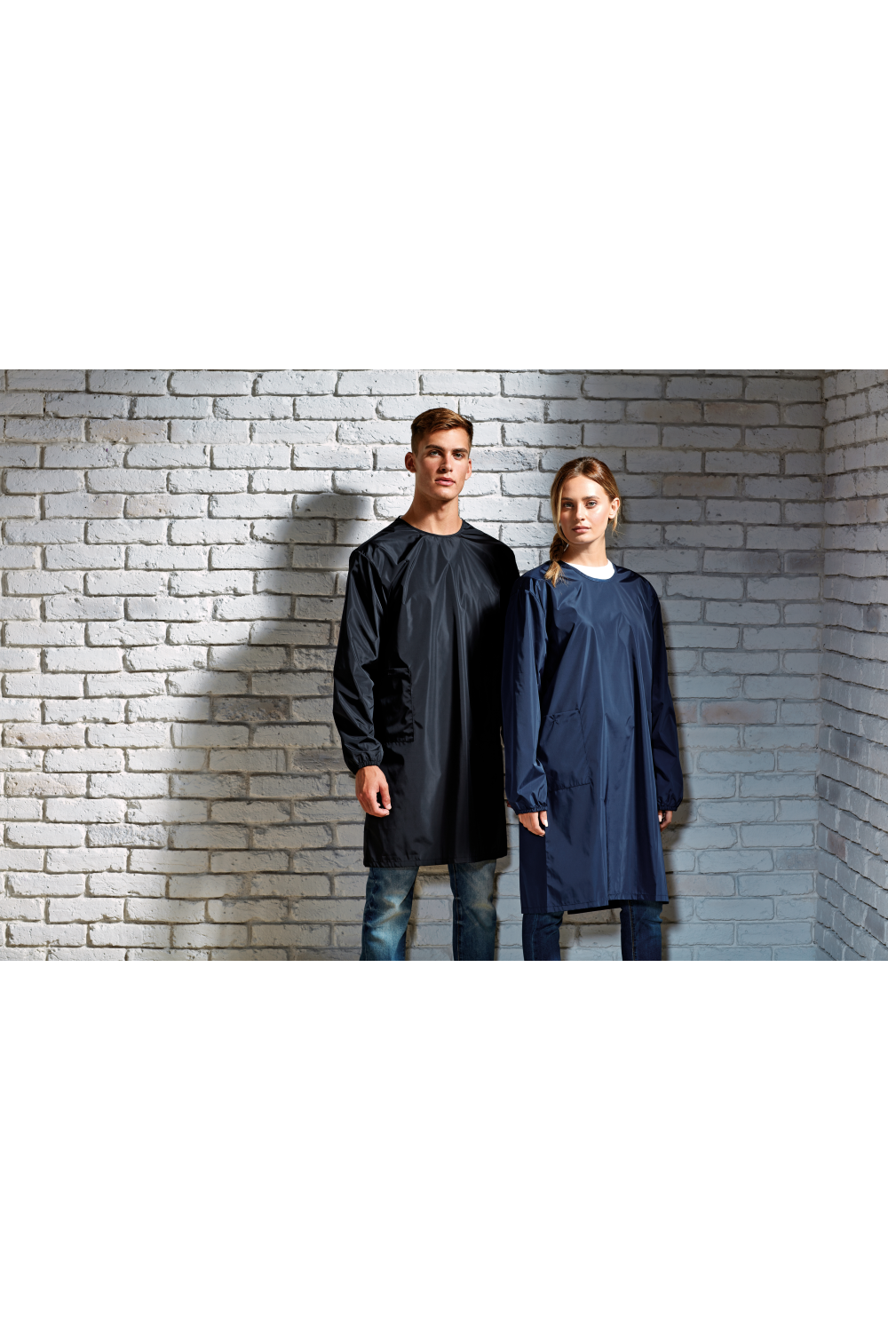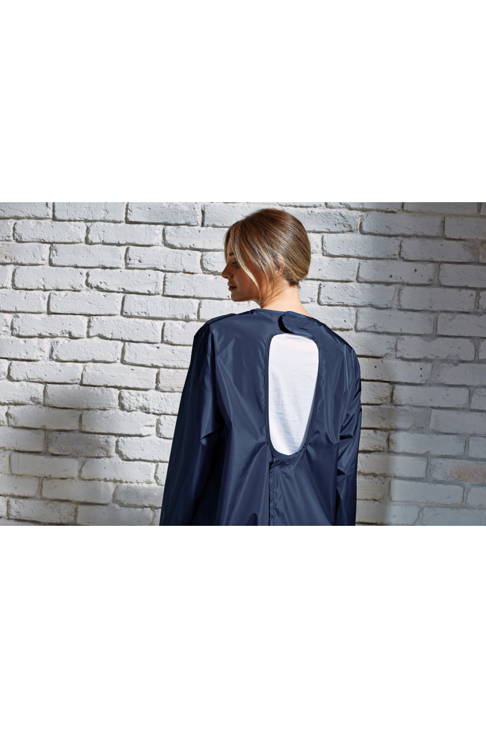 100% Polyester avec revêtement en polyuréthane. Coupe droite. Poches ouvertes sur les côtés. Les manches longues sont terminées par des poignets élastiques. Deux points d'attache au dos sur l'encolure et au centre du dos qui permettent le maintien de la blouse. Lavage domestique à 60°C.