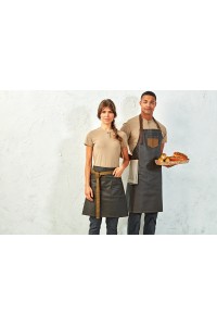 100% coton denim avec une finition acrylique "effet huilé" longue durée. Effet denim teint grâce aux fils tissé-teint. Tablier à bavette au style vintage avec empiècements en tissu contrasté et détails en similicuir pour une apparence à la fois authentique et tendance, prisée dans bon nombre d'établissements. Liens d'attache en similicuir. Lien d'attache avec boucle ajustable au niveau du cou. Dimensions : H 86 cm x L 72 cm.