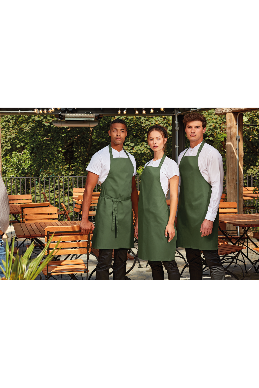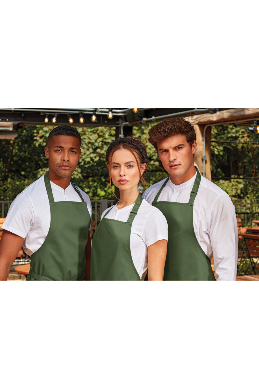65% polyester / 35% coton sergé. Taille réglable. Cordons du même tissu que le tablier. Longueur: 86 cm. Largeur 72 cm. Longueur des cordons: 90 cm. Lavage domestique 60°C. Lavage industriel 85°C.