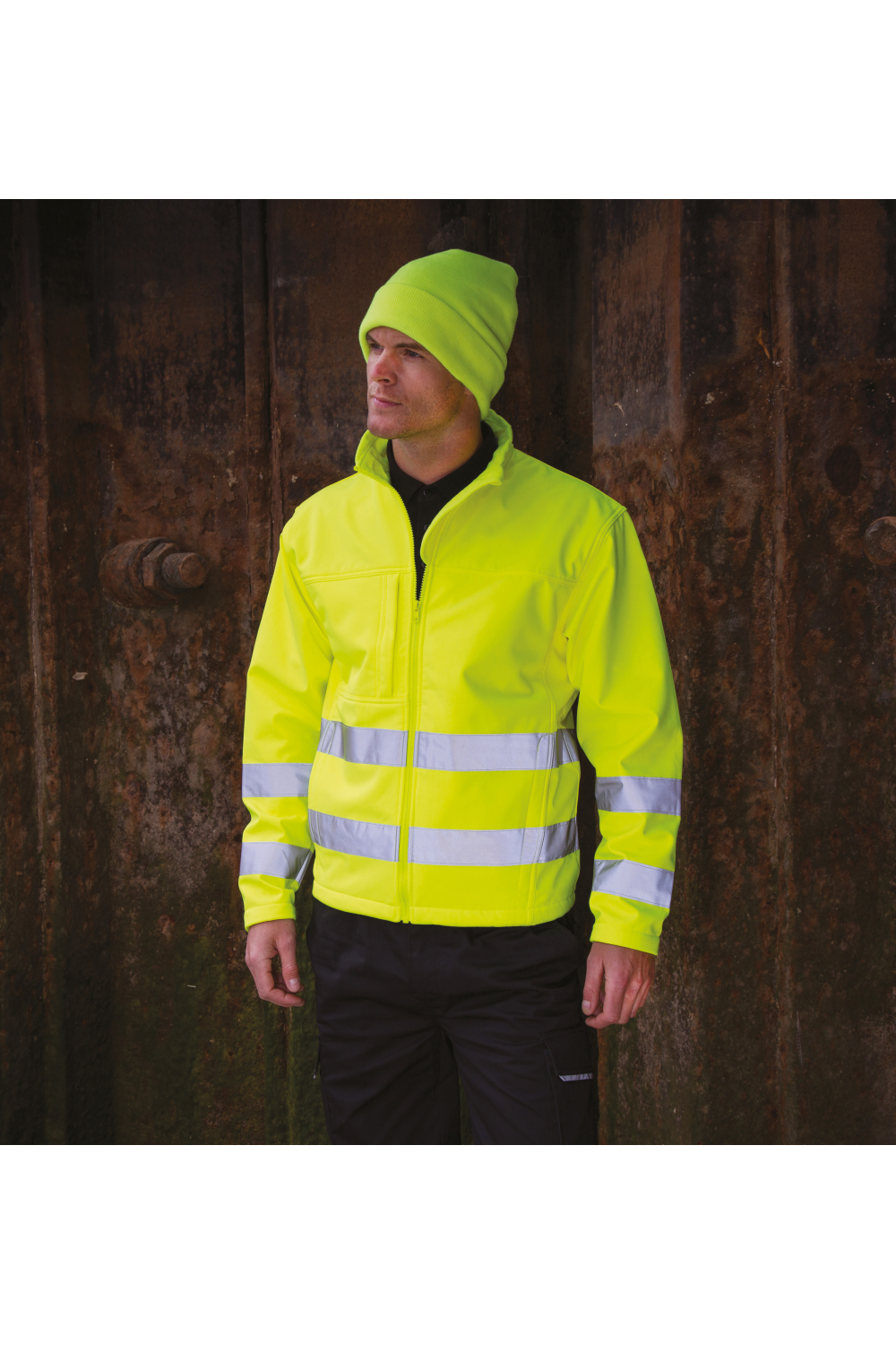 Tissu contrecollé 3 couches. Couche extérieure : 93% polyester / 7% élasthanne. Couche intermédiaire : membrane impermeable 5.000mm et respirante 3000 gr/m2/24 en polyuréthane thermoplastique. Couche intérieure : microfibre de polar pour une meilleure capacité thermique. Doublure : haut du dos Taffeta 100% polyester. 2 poches latérales à glissière. 1 poche poitrine à glissière. 2 grandes poches intérieures et 1 poche intérieure pour téléphone. Pan de dos plus long. Rabat tempête intérieur. Galons de sécurité de 50 mm cousus intégrant les matériaux réfléchissants scotchlite de 3M.EN ISO 20471:2013 catégorie 2.