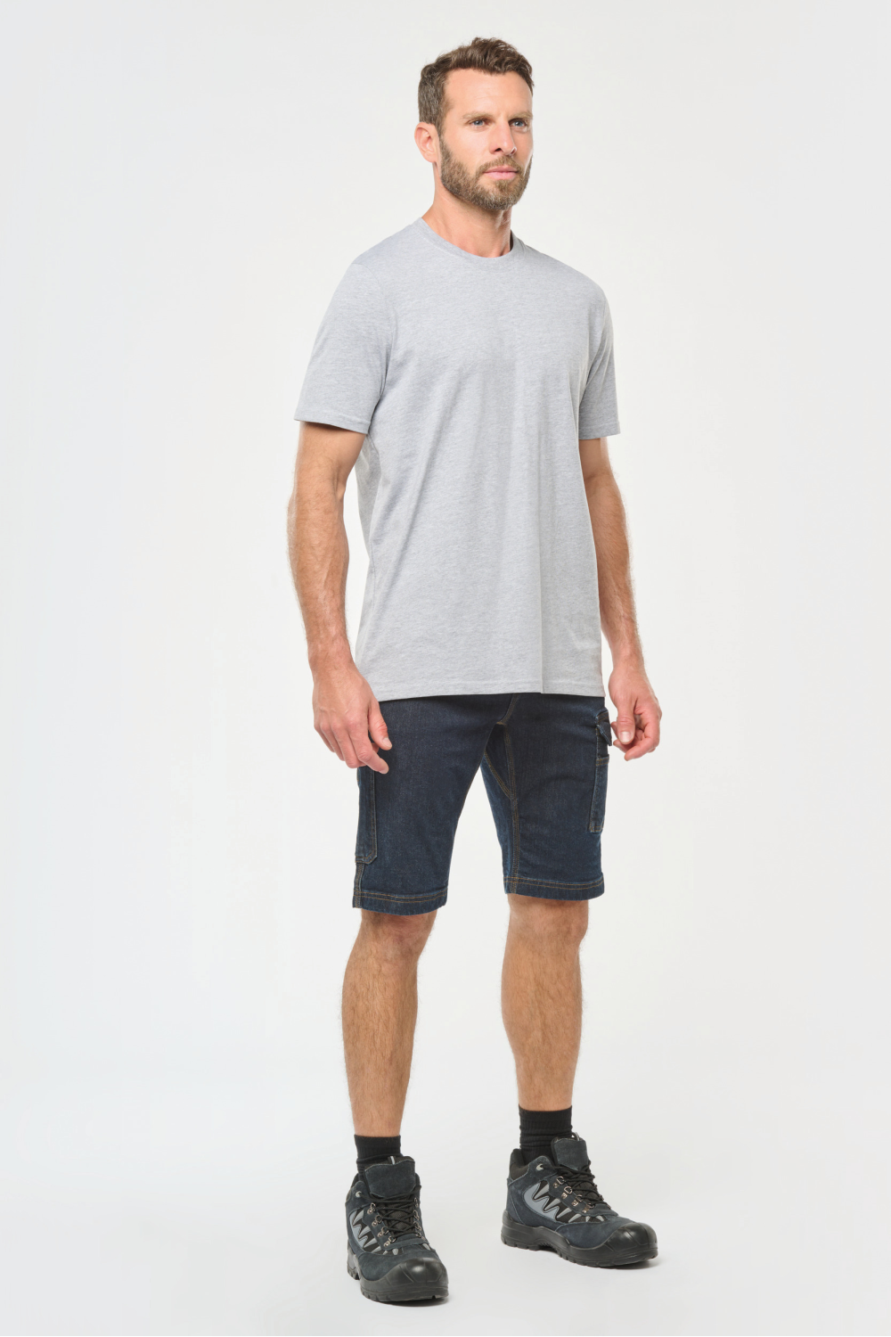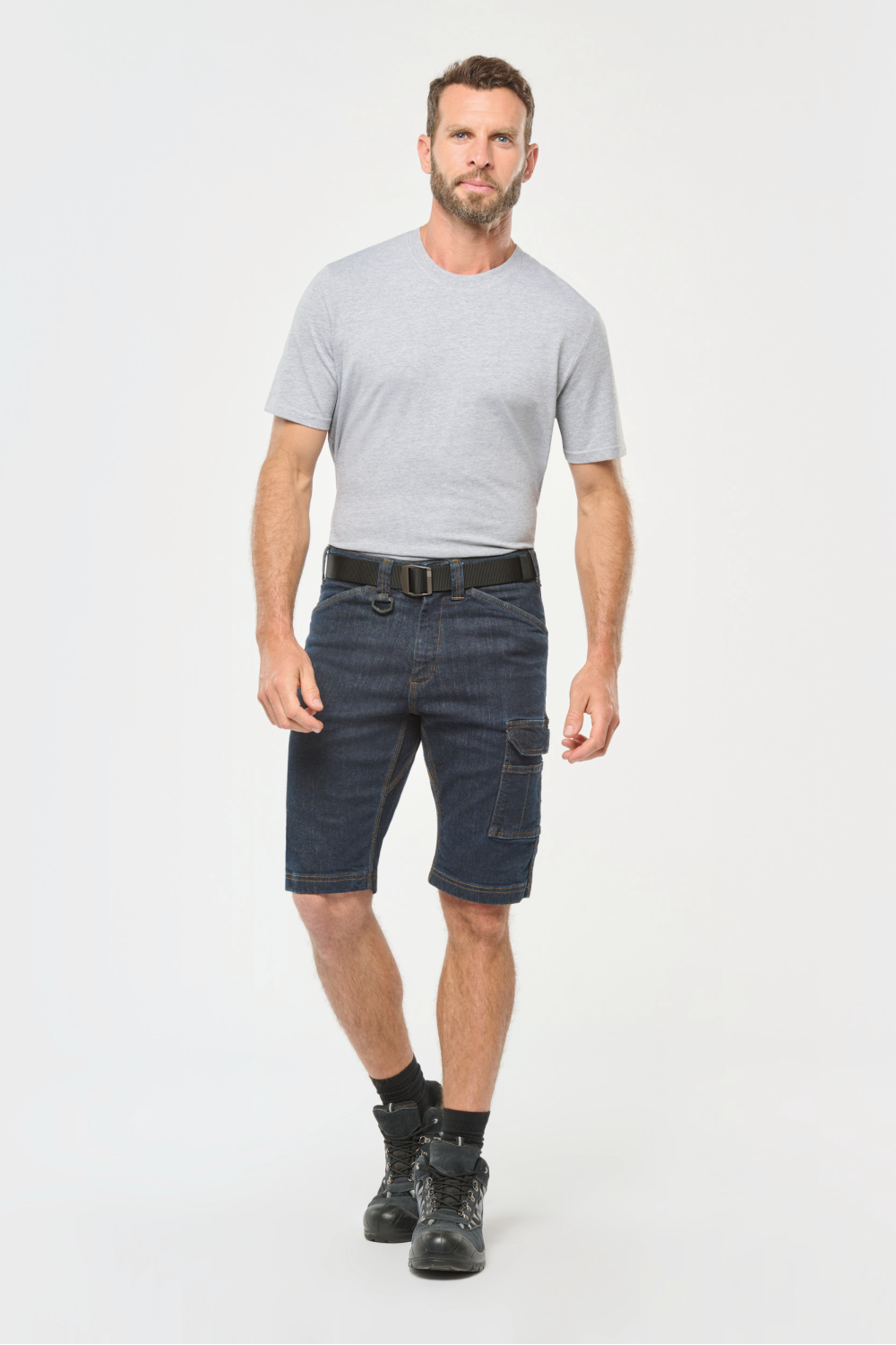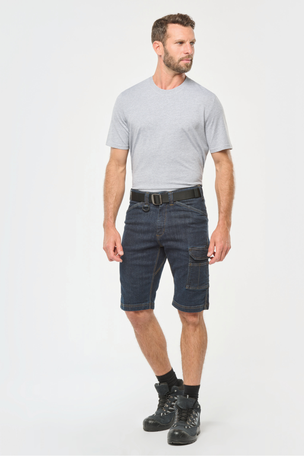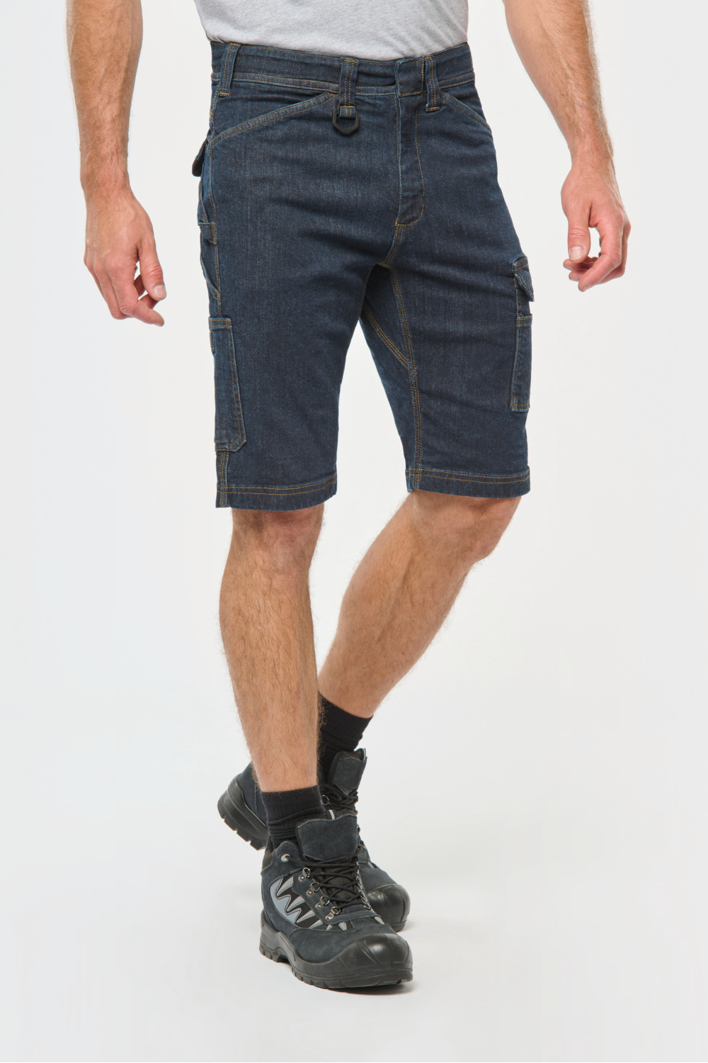 99% coton / 1% élasthanne. Toile denim. Coupe droite. Lavage industriel 60°C. Fermeture boutonnée avec cache-bouton et zip métal. Devant : 2 poches ouverture en biais. Côté gauche : poche à rabat avec couture renforcées et fermeture auto-agrippante. Sur-poche à 3 compartiments dont 1 avec passe stylo. Côté droit : passe-marteau, poche mètre et sur-poche avec fermeture auto-agrippante. Dos : 2 poches plaquées avec coutures renforcées dont une à rabat avec bande auto-agrippante. Ceinture arrondie dans le dos avec large bande élastique intérieure antiglisse pour un maintien optimal. Boucle orange intérieur milieu dos. Passants avec coutures renforcées et 1 anneau plastique à l'avant. Soufflet renforcé à l'entrejambe pour plus de résistance et une parfaite liberté de mouvement. Triple surpiqûres coutures côtés, intérieur jambe et fourche dos. Finition double aiguille au bas de jambe. Etiquette de marque détachable.