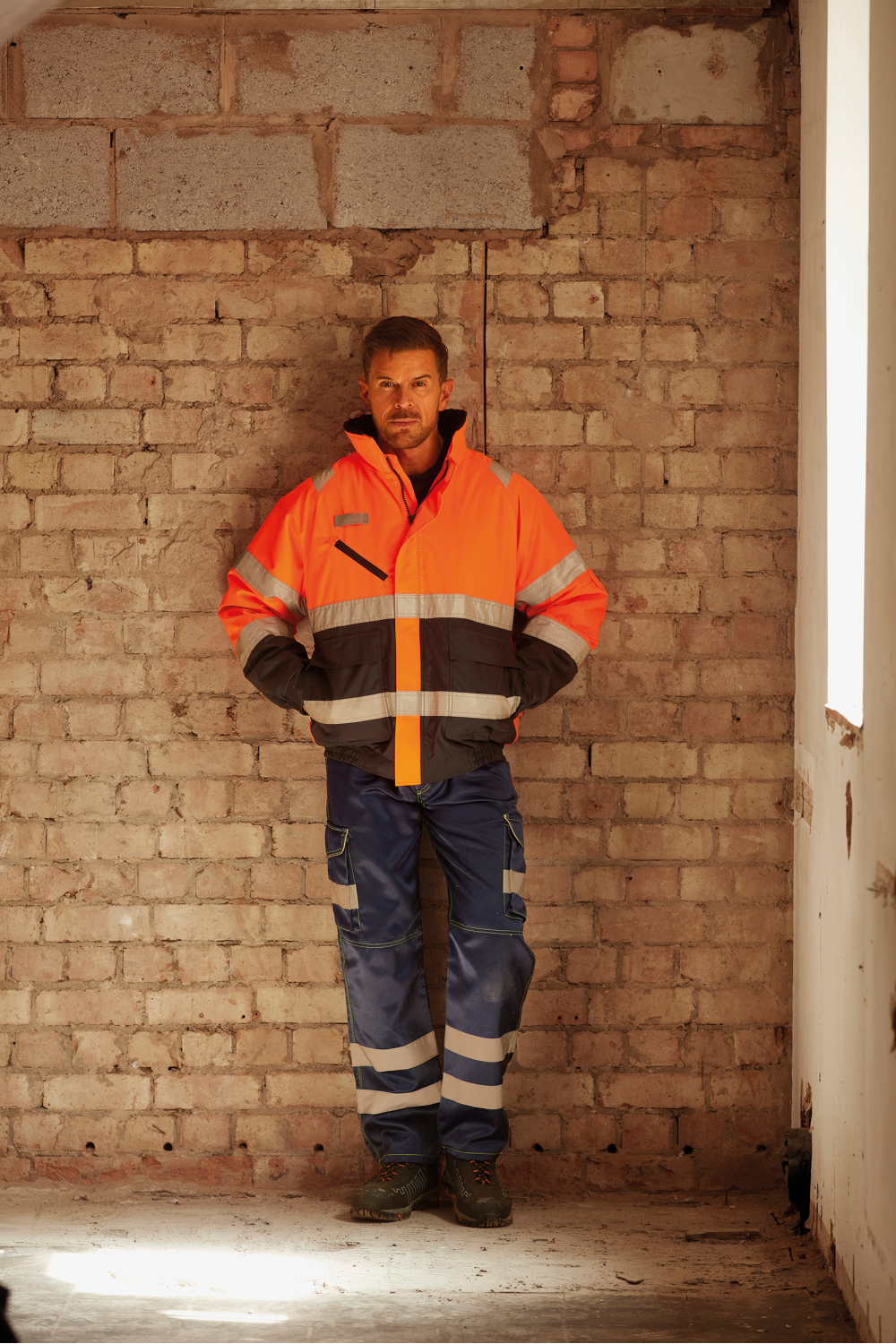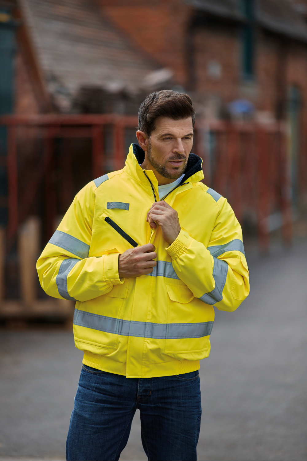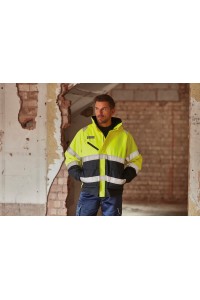 Veste en polyester, fabriquée en tissu rip-stop à carreaux fin, imperméable et respirant. Doublure amovible en laine polaire Sherpa. Bandes rétro-réfléchissantes de 5 cm cousues en double autour du corps et de chaque bras. Deux bandes réfléchissantes sur le haut des épaules. Poche poitrine avec fermeture auto-agrippante étanche. Poches pour stylo et téléphone portable sur le bras gauche. Capuche amovible. Fermeture à glissière double sens. Conforme aux normes EN ISO20471 Catégorie 3.