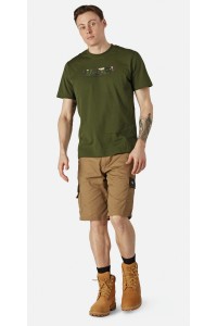 65% polyester / 35% coton. Short sans partie métallique apparente. 2 poches à l'italienne à l'avant. 1 poche cargo jambe gauche avec rabat velcro. 1 poche cargo jambe droite avec rabat velcro et compartiment pour téléphone portable. 1 poche mètre jambe droite et 2 poches arrières avec rabat velcro. Fermeture bouton et zip non métallique. Lavable à 60°.