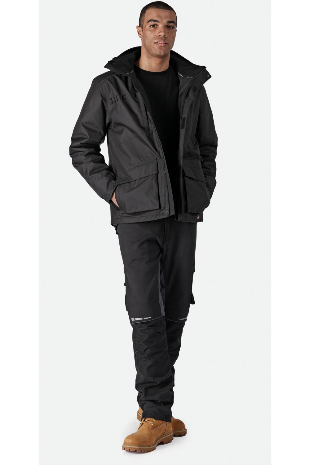 100% polyester. Polyester Oxford avec revêtement PU. Tissu imperméable à 3 000mm et respirant à 3 000g/m2/24h. Veste avec rembourrage léger pour faciliter le mouvement. Protection contre la pluie. Poignets élastiqués. Poche poitrine. Capuche amovible. Poche intérieure. Fermeture zippée avec rabat tempête.