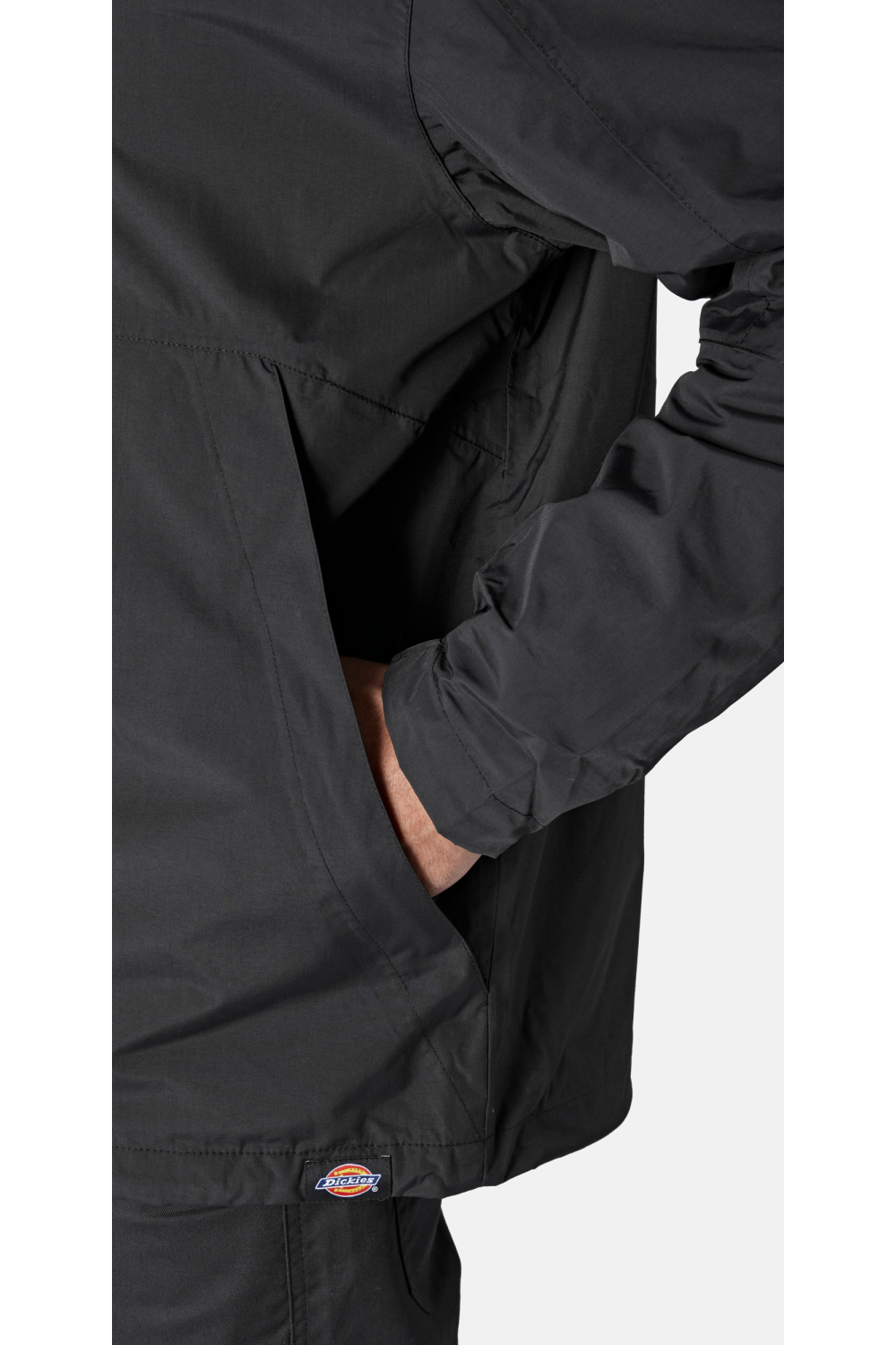 100% nylon. Veste avec un revêtement en PU. Tissu imperméable jusqu'à 10 000 mm et respirant jusqu'à 5000 g/m2/24h. Full Zip. Ourlet plongeant. Ourlet avec bande transparente réfléchissante. Capuche. Poche poitrine. Poignets élastiqués.