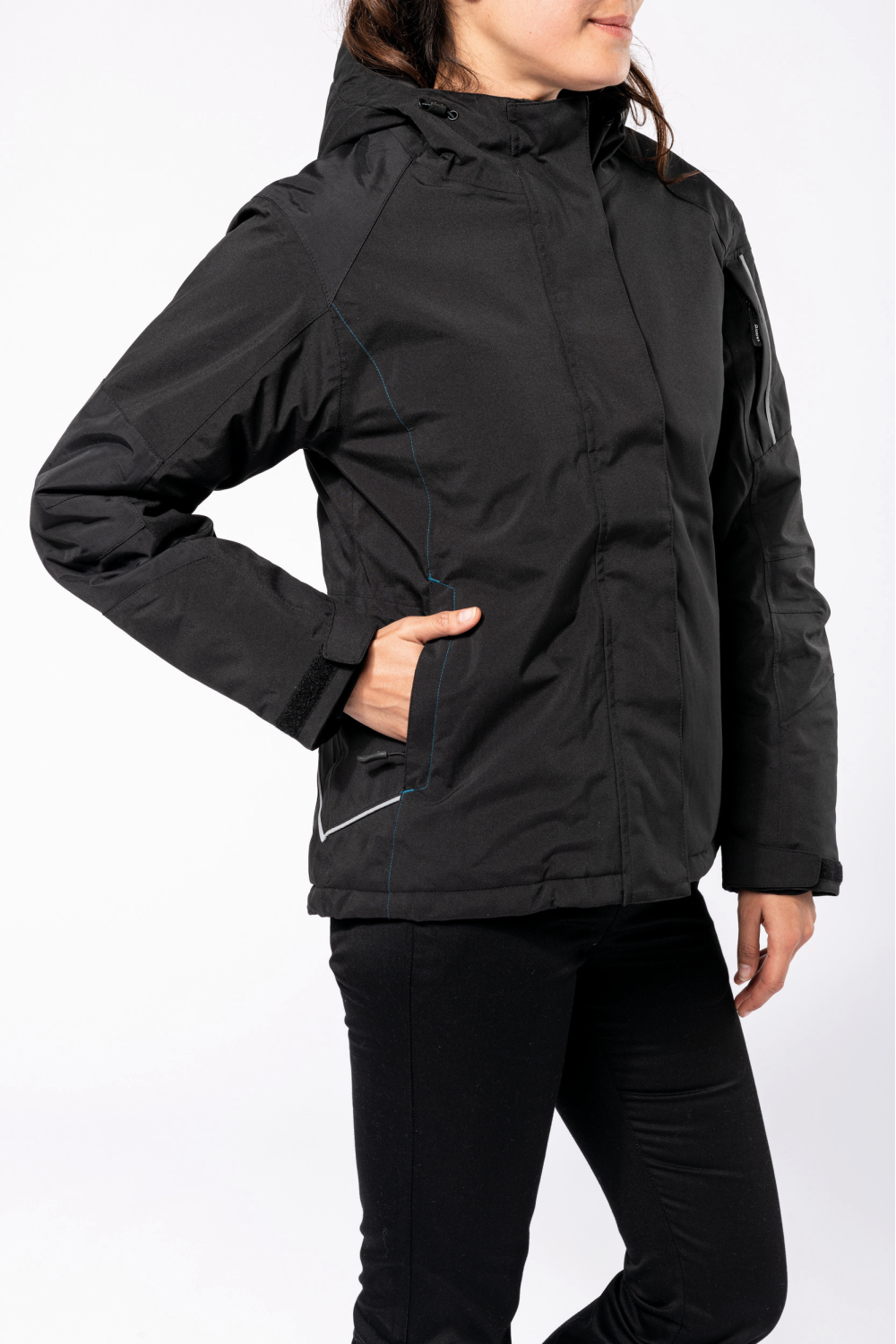 100% polyester. Veste doublée et rembourrée, respirante. Full zip. Patchs résistants à l'abrasion au niveau du coude. Panneaux articulés aux coudes. Poignets réglables. Bords réfléchissantes pour une meilleure visibilité. Ourlet plongeant à l'arrière. Protection contre la pluie et le vent. Poche sur la manche. Poche intérieure. Rabat tempête. Capuche. Poignets ajustables. Accès facile pour la personnalisation.